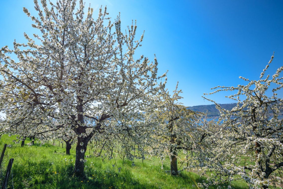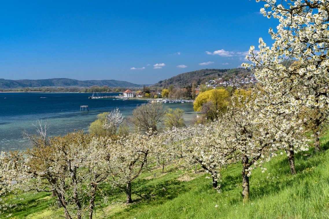 Es ist Sonntag morgen, die Sonne scheint, nach den kalten Wochen der letzten Zeit fühlt es sich endlich ein wenig nach Frühling an. Der April zeigte sich bisher eher von seiner frostigen Seite. Trotz allem stehen draußen in der Natur seit ein paar Tagen die ersten Bäume und Sträucher schon in voller Blüte. Genau die richtige Zeit also für die Apfel- und Kirschblüte am Bodensee. Obstplantagen gibt es rings um den Bodensee. Dort werden hauptsächlich Äpfel, Kirschen und Aprikosen angebaut. Die Bäume stehen meist in Reih und Glied aufgereiht, sodass sie gut zu ernten und effizient zu pflegen sind. Wir sind aber auf der Suche nach schönen, alten Streuobstwiesen, auch die gibt es noch am Bodensee. Dazu fahren wir heute an’s westliche Ende des Sees, genauer nach Sipplingen.