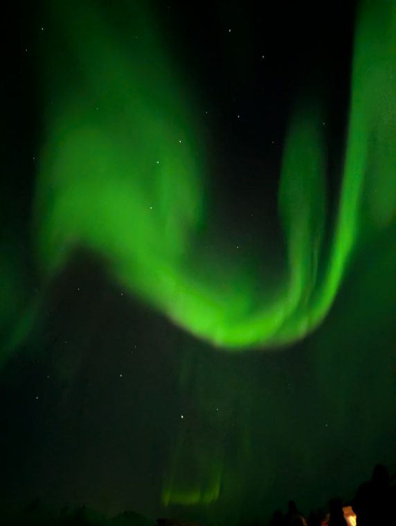 Am Abend gibt’s dann noch Polarlichter. Nach zwei Stunden sind Finger und Füße kalt, die Speicherkarten der Kamera voll. Wunderschön unerwartet.