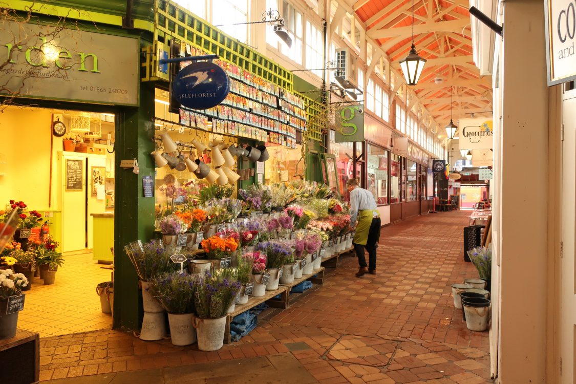 Die Stände in den Covered Markets (eine überdachte Markthalle mit vielen kleinen Läden und Restaurants) öffnen ihre Tore. Die Händler füllen ihre Auslagen mit Fisch, Fleisch, Gemüse und Obst. Der Blumenhändler stellt frische Schnittblumen auf. Das Café deckt die Tische vor der Tür.