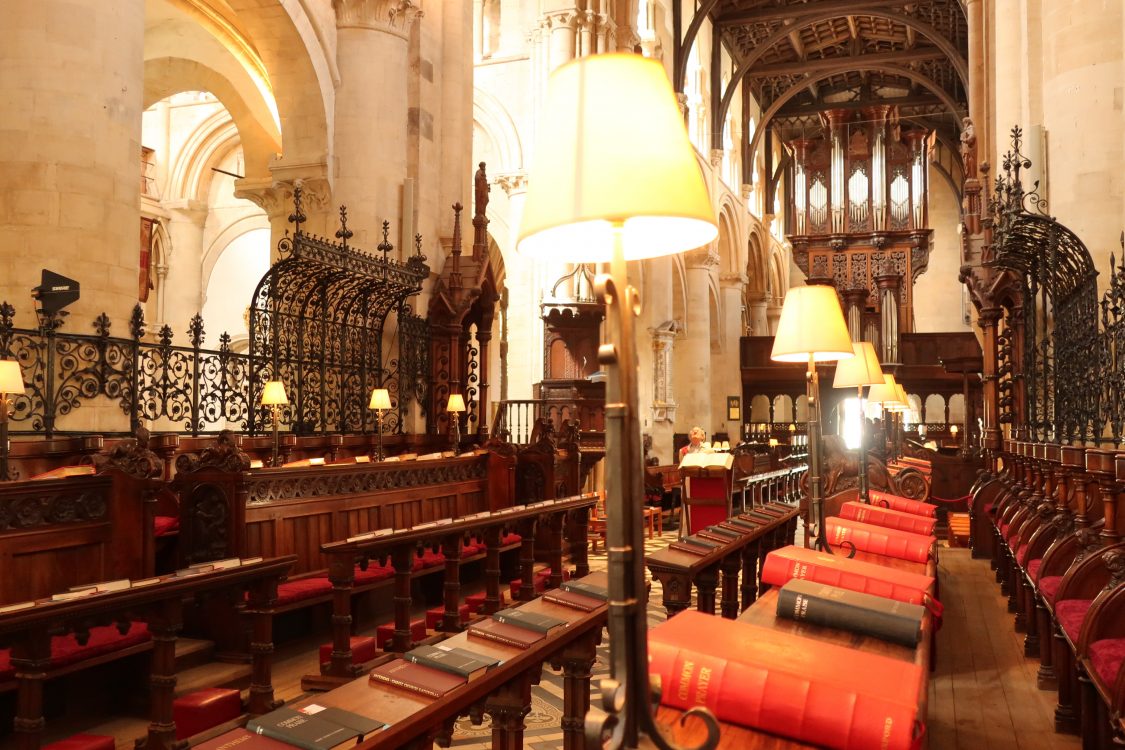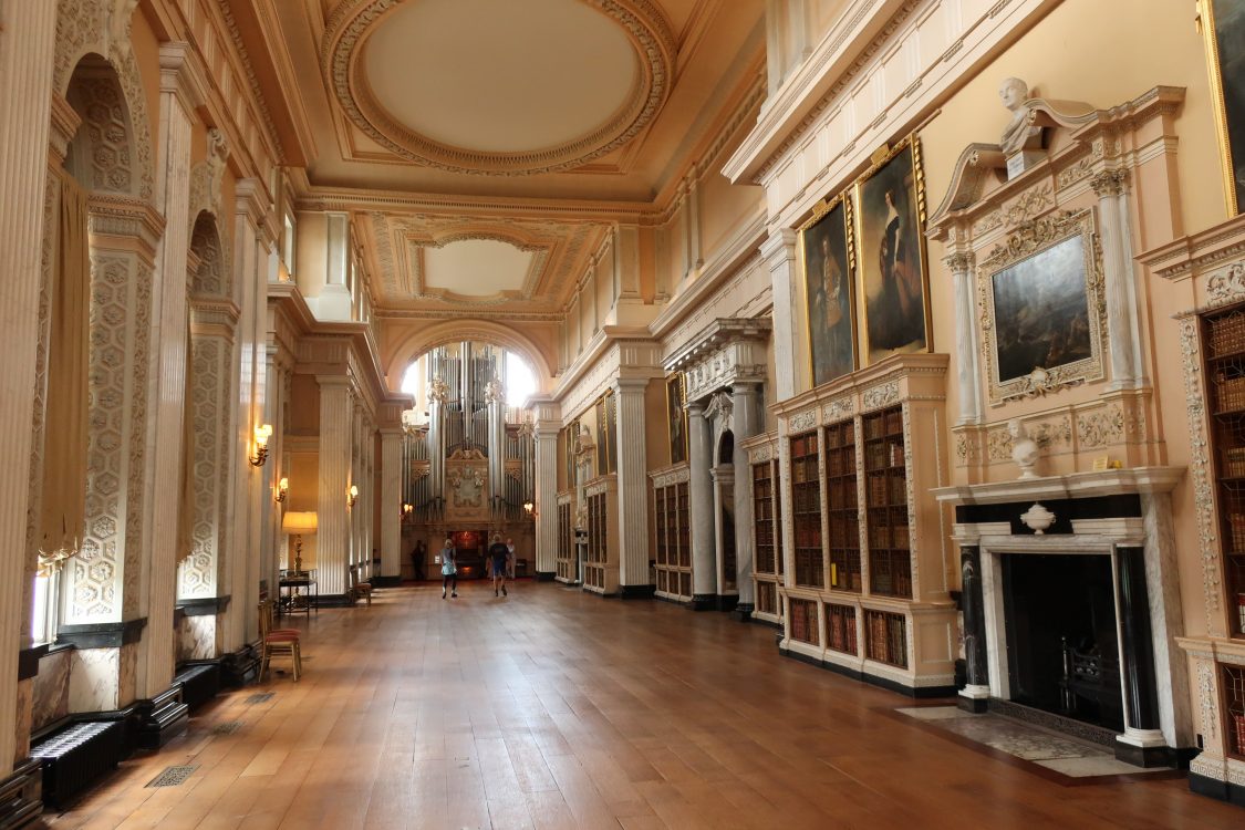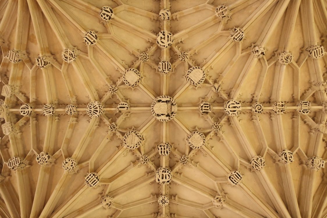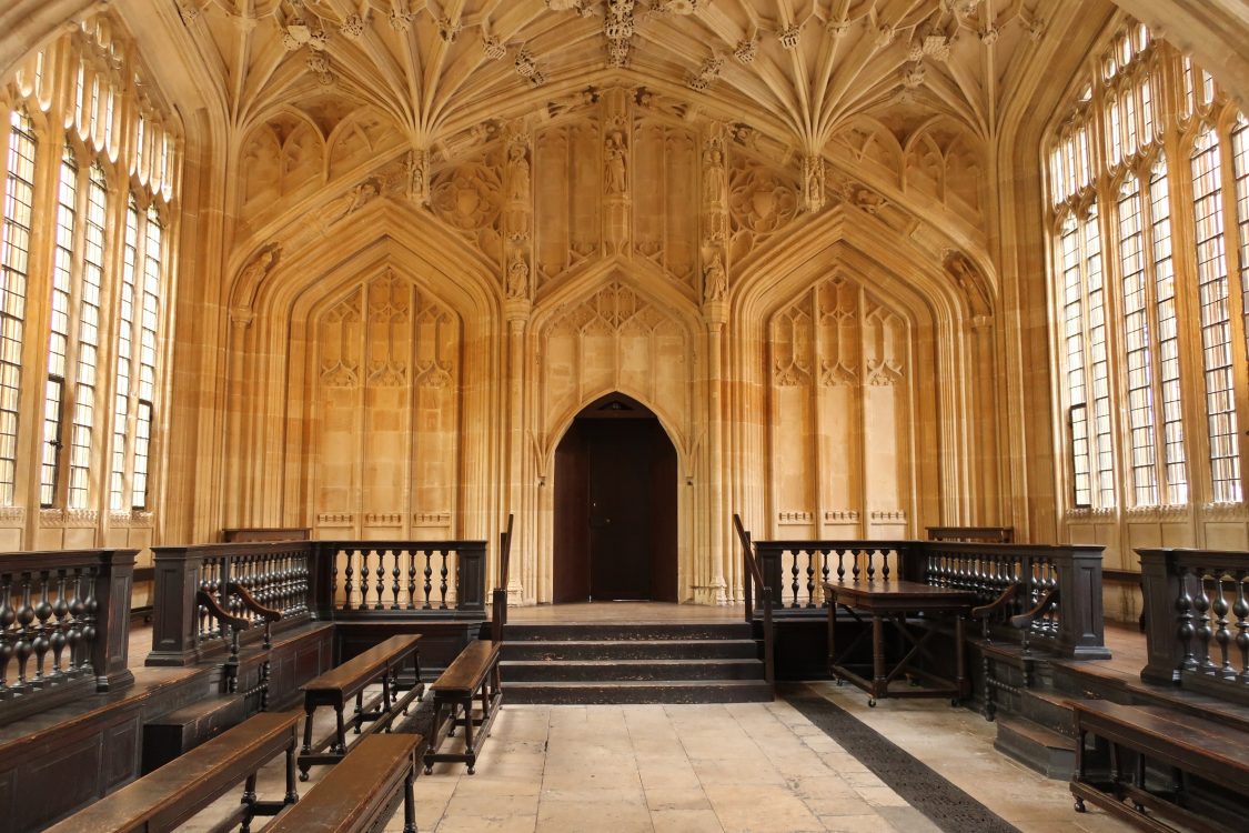 Die Bodleian Library ist eine berühmte Bibliothek. Über 8 Millionen Bücher lagern hier. Die Radcliffe Camera ist ein Teil, der berühmteste Teil, der Bodleian Library. Der Raum muss eine prunkvolle Decke haben. Hinein kommt man allerdings nur als Student des Colleges. Für Touristen ist der Zugang zu diesem Raum nur zwei Mal die Woche im Rahmen einer geführten Tour möglich. Verständlich. Denn die Studenten wollen in Ruhe arbeiten und lernen. Die Divinity Hall war allerdings zu besichtigen. Die Decken hier sind auch schon sehr detailreich verziert.