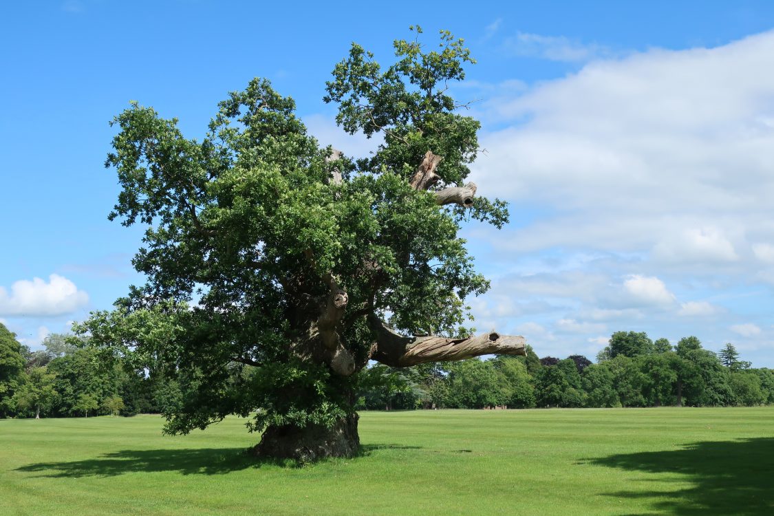 Im weitläufigen Park überall große, knorrige alte Bäume. Besonders die Eichen haben dem Wetter und den Jahren getrotzt.
