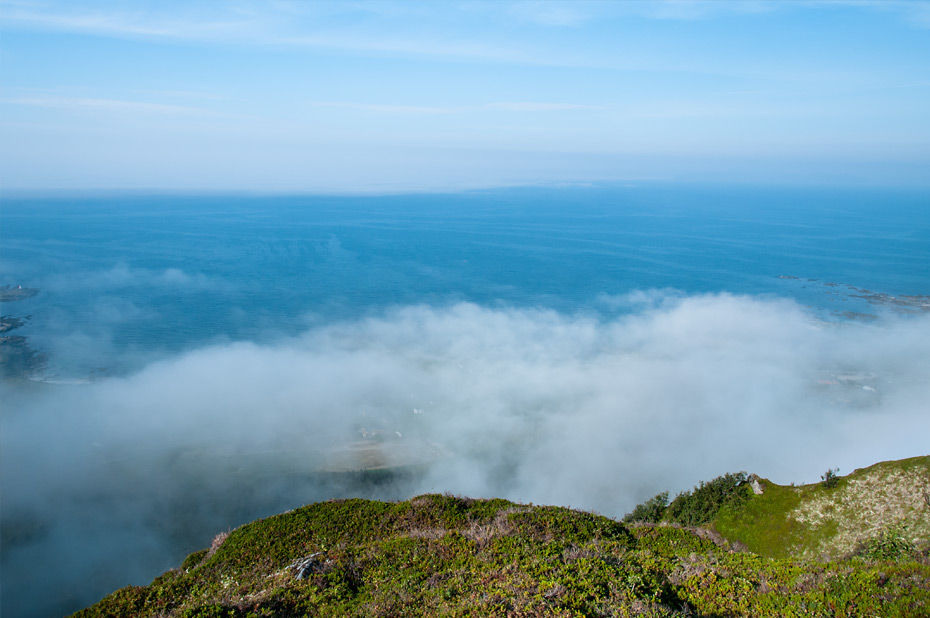 Beim abwärts gehen zieht ein Wolkenband vom Meer herein.