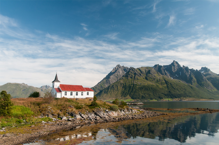 Etwas nördlich von Svolvaer am Austnesfjord liegt ein kleines Kirchlein auf der Halbinsel Sildpollnes. Eine der meist fotografierten Kirchen, da vom nahe gelegenen Aussichtspunkt fast jeder Reisende ein Foto macht. Direkt neben der Kirche liegt unsere Unterkunft für die nächsten Tage. Der Blick von der Terrasse geht direkt auf den Fjord. Wir sind fast die einzigen Gäste zu dieser Jahreszeit. Die nächste Straße liegt einige hundert Meter entfernt. Die Ruhe ist erstaunlich. Faszinierend… Irgendwie schön.
