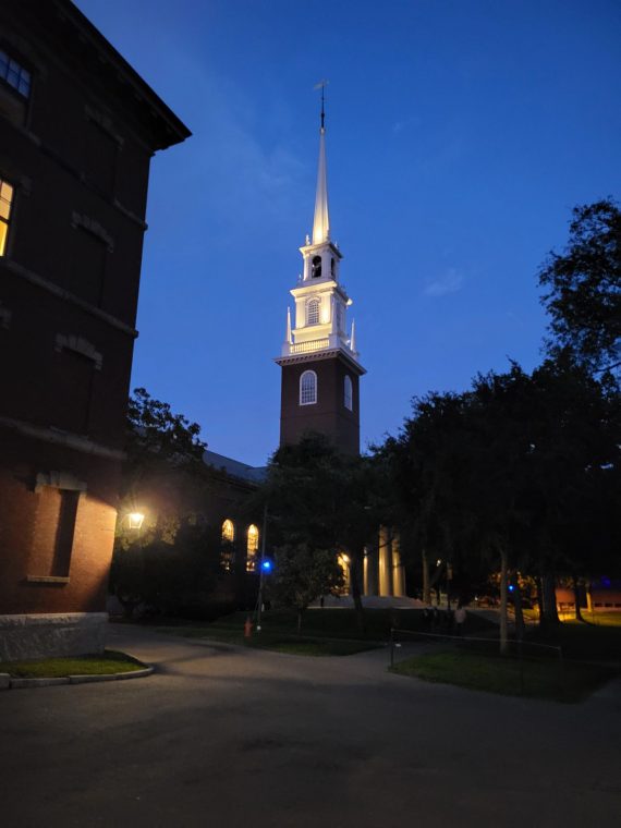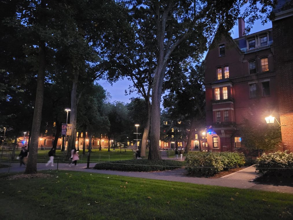 Am Abend bummeln wir durch den Park von Harvard. Die Backsteingebäude wirken mächtig, ein paar Gebäude sind mit Säulen verziert. Direkt um die Ecke sind die Bars und Restaurants gut besucht.