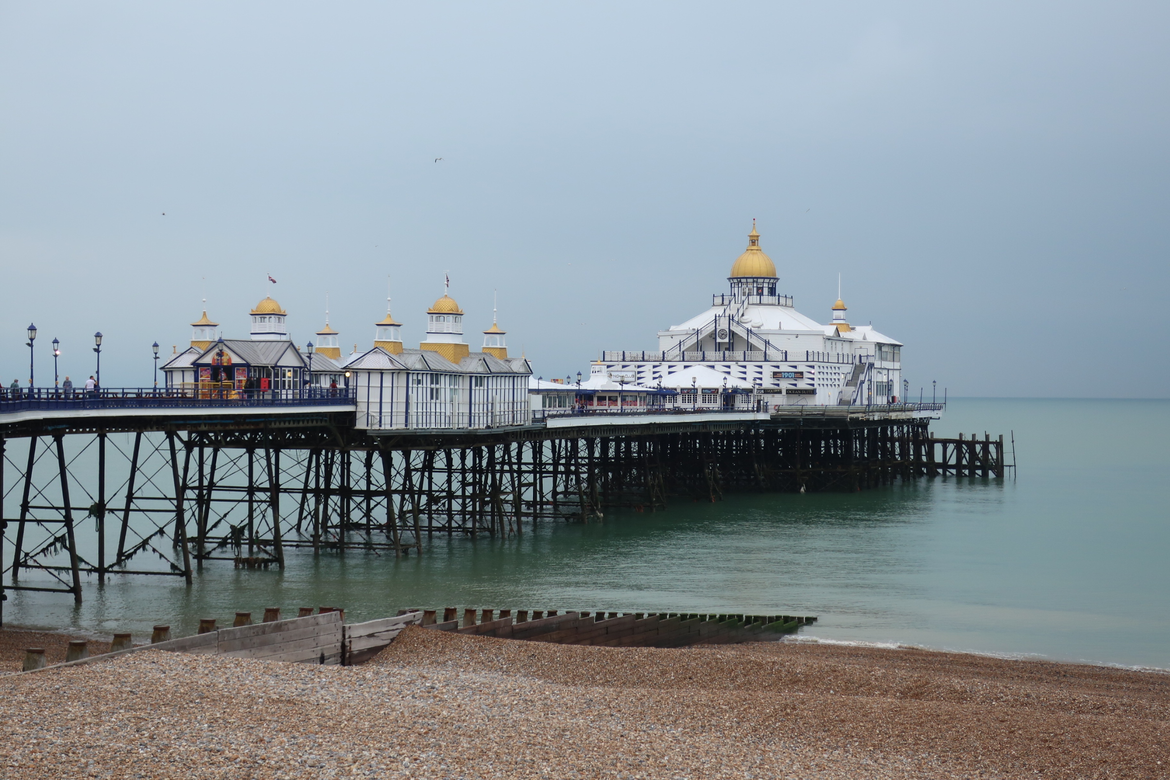 Der nächste Ort ist Eastbourne. Der Pier ist hier ebenfalls ganz schön. Aber die bunten Lichter und der Trubel vom Brighton Pier fehlen uns.