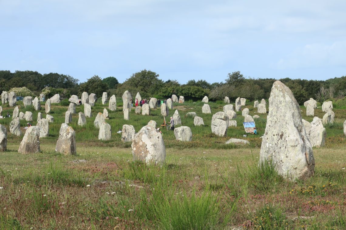 Heute sind die Steinreihen für Maler geöffnet. Entsprechend sitzen immer wieder Menschen mit bunten Mitteln und Staffelei inmitten der Felder. Die Bilder die sie malen könnten unterschiedlicher nicht sein.