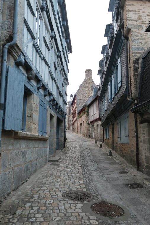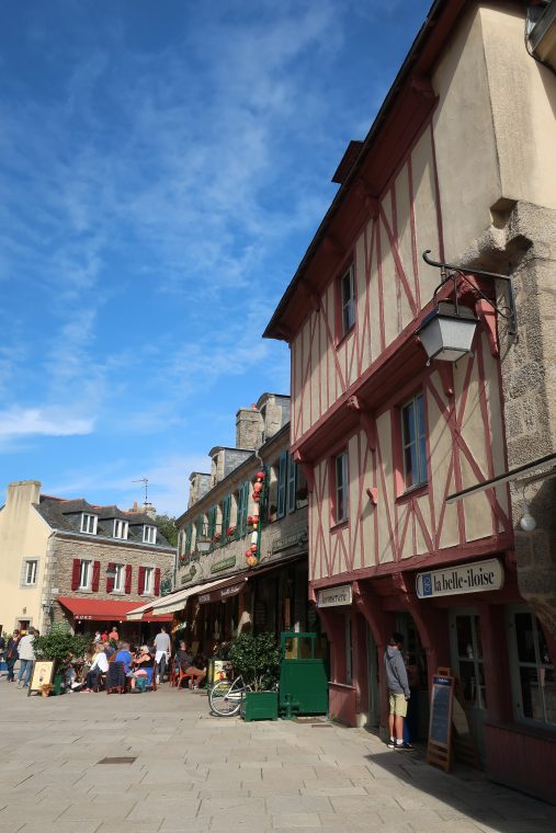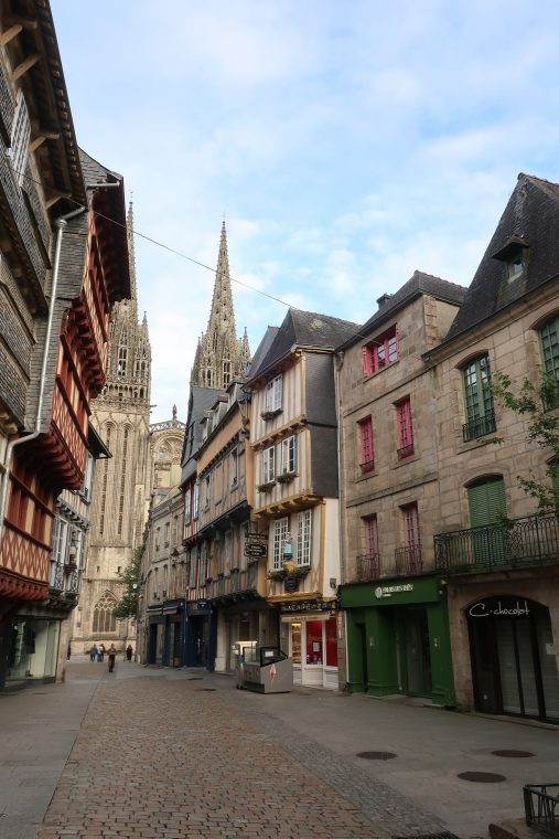 Um die Kathedrale herum viele kleine Gassen mit Kopfsteinpflaster gesäumt von bunten Fachwerkhäusern. An einem Platz mitten in den Gassen entdecken wir fünf Creperies. Hier gibt es alle Varianten – mit Gemüse, Fleisch und Saucen und zum Nachtisch dann die bekannten süßen Optionen.