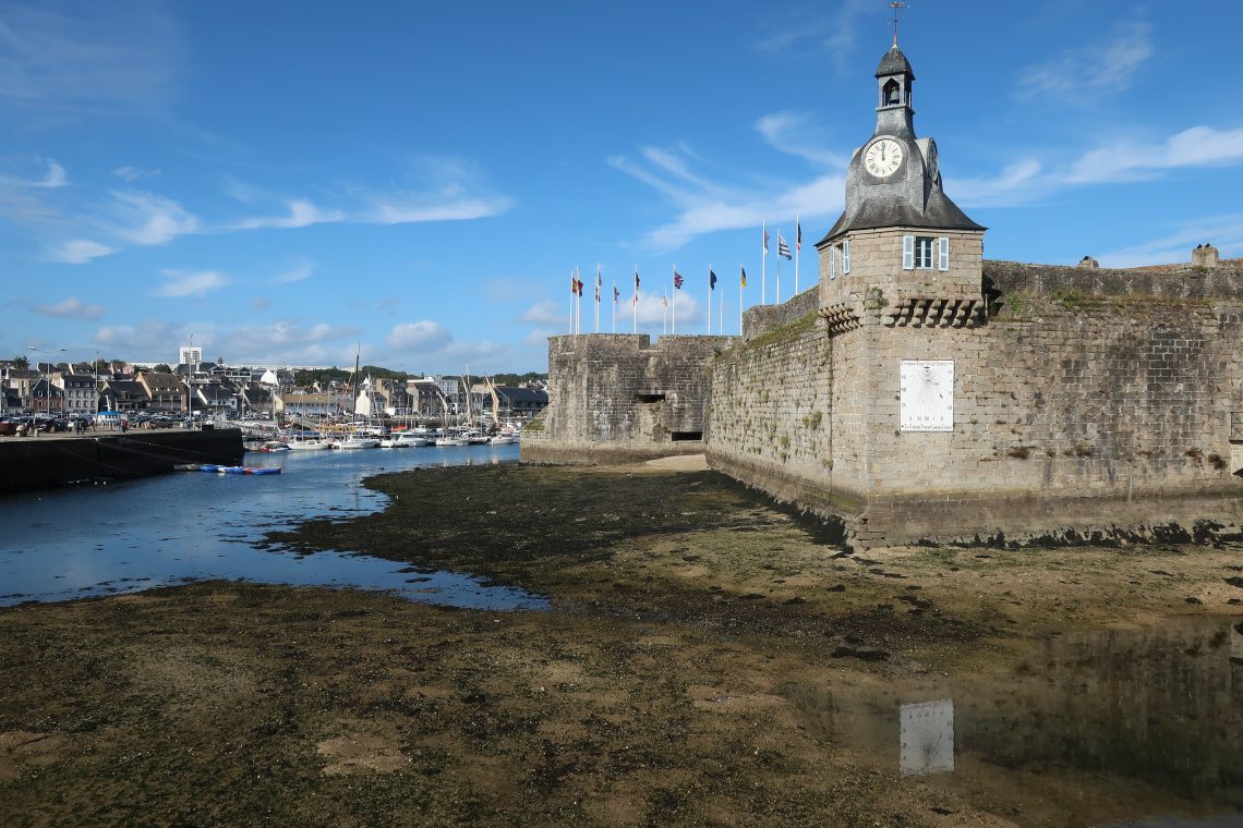 In Concarneau schauen wir uns die befestigte Altstadt an. Sie liegt auf einer Insel, umgeben vom modernen Yachthafen. Die Gassen sind herausgeputzt und mit Restaurants und Souvenir Läden auf Touristen ausgerichtet. Von den Mauern sieht man über die umliegenden Häfen. Die Anlage ist groß und verwinkelt. Ein schöner Zwischenstopp.