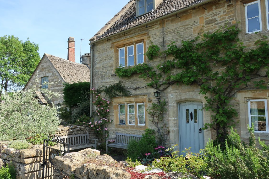 Cotswolds. Malerische, schön herausgeputzte Örtchen. Bilderbuch tauglich. Blühende Blumen, Rosenranken an den Häusern. Sonne, blauer Himmel. Ruhig. Vögel zwitschern. So stellt man sich die Cotswolds vor.