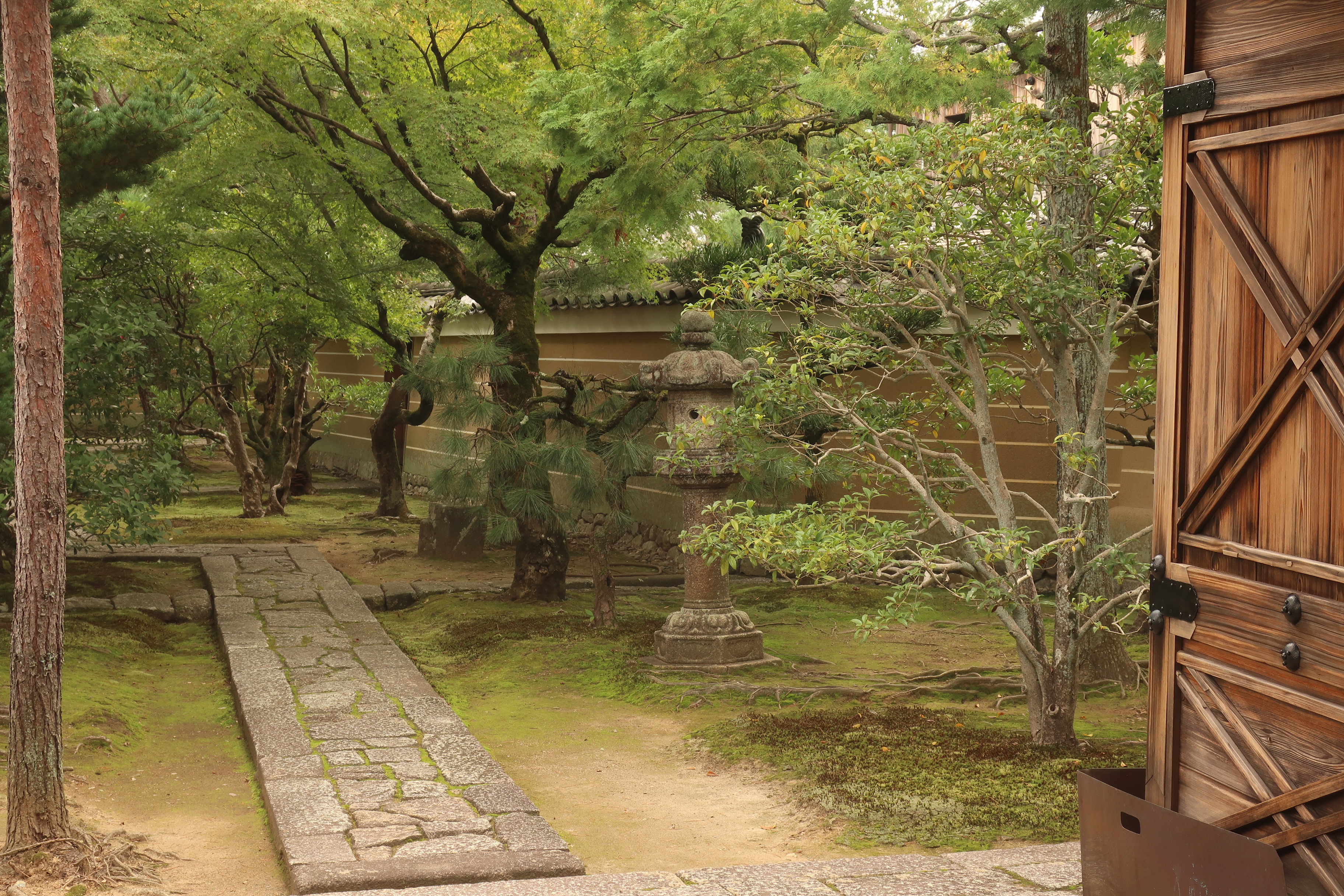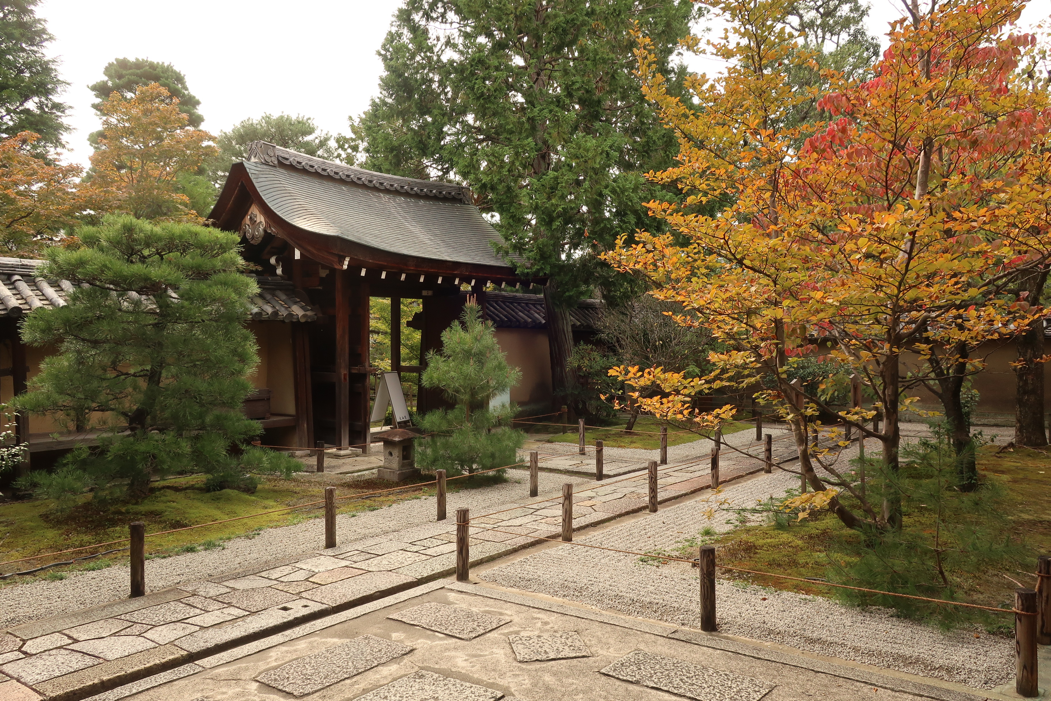 Die Tempel Anlage ist absolut sehenswert. Man fühlt sich ein wenig wie in einer eigenen Welt mitten in Kyoto. Je nach Saison und Uhrzeit kann man einzelne Tempel in der Anlage besichtigen. Man zahlt pro Tempel Eintritt. Aber es lohnt sich. In fast jedem Tempel gibt es Räume mit fein bemalten Stoffen an den Wänden. Der Boden ist mit Tatami-Matten ausgelegt. Die Tempel sind verwinkelt und meist von unglaublich schönen Zen Steingärten umgeben. Leider ist das Fotografieren in den Tempeln verboten. Aber die Schönheit der Gärten und die Anmut der Tempel lassen sich eh nicht angemessen auf Bildern darstellen. Aber ein paar Bilder von dem allgemeinen Teil der Anlage haben wir dann doch noch gemacht.