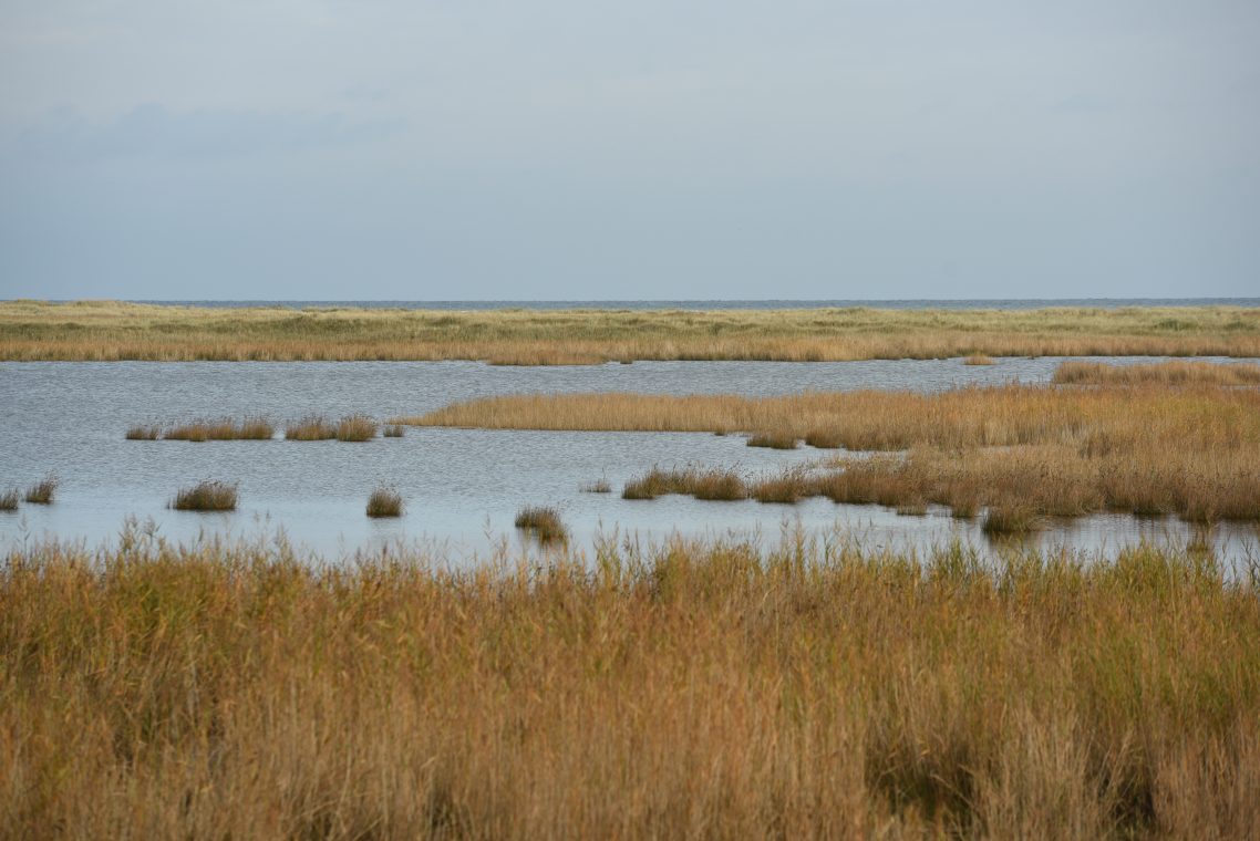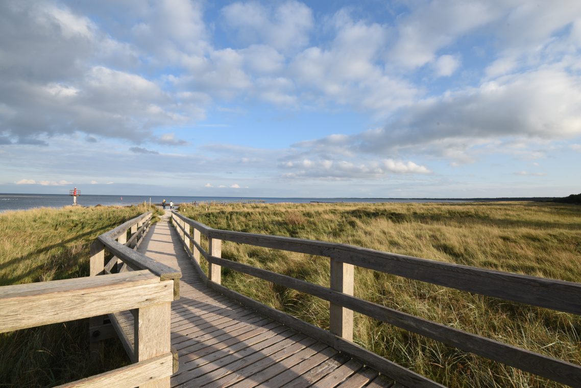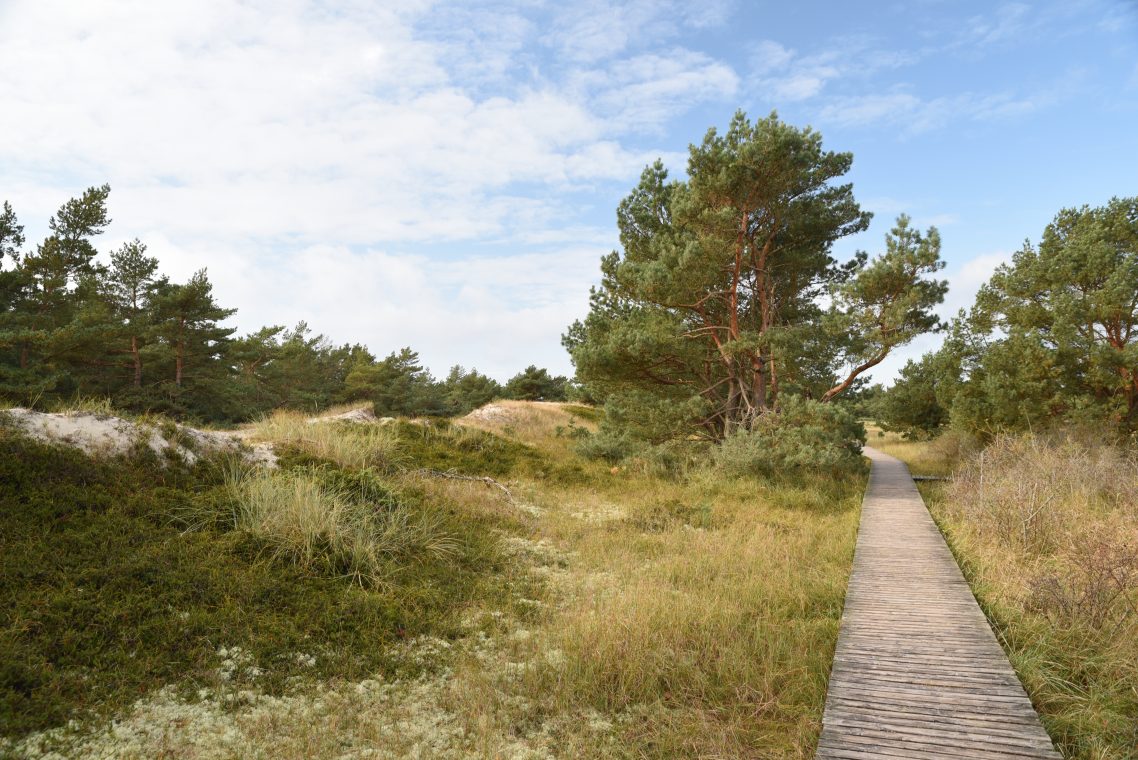 Der heutige Tag geht schon besser los. Die Sonne scheint schon ein wenig durch die Wolkendecke und so machen wir uns auf den Weg zum Darßer Ort mit seinem Leuchtturm. Die Wanderung dahin durch den Nationalpark Vorpommersche Boddenlandschaft dauert ungefähr vier Stunden bei einer Länge von knapp 17 km.
