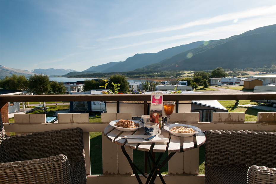 Wir fallen erstmal noch ne Runde ins Bett und dösen noch ein wenig. Zwei Stunden später weckt uns die Sonne und wir setzen uns zum Frühstück auf unsere “Terrasse”.