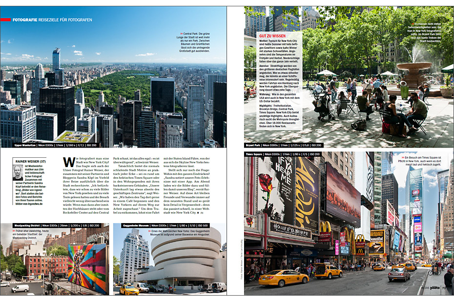 Nun fieberten wir der Veröffentlichung entgegen. Vier Seiten sollte der Artikel umfassen, davon ein doppelseitiges Bild von Manhattans Südspitze. Ein Traum 🙂 Der Start einer großen Fotografen und Reiseblogger-Karriere? Oder nur eine coole Episode im Leben eines Hobby-Knipsers? Man wird sehen. Jedenfalls sind wir ganz schön stolz, einen Artikel über unseren Reiseblog in einer Fotozeitschrift erhalten zu haben.
