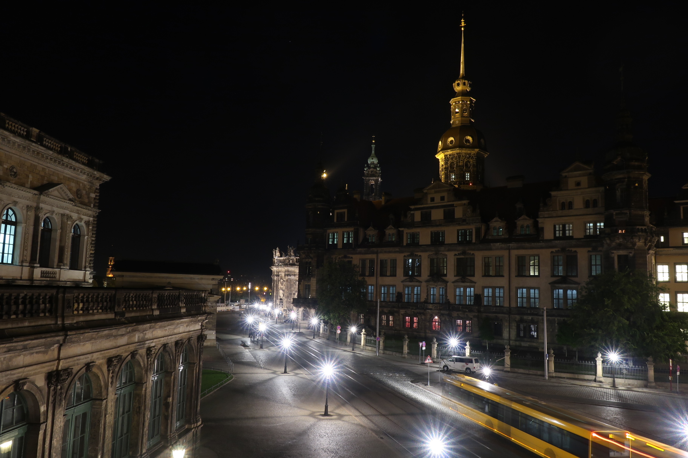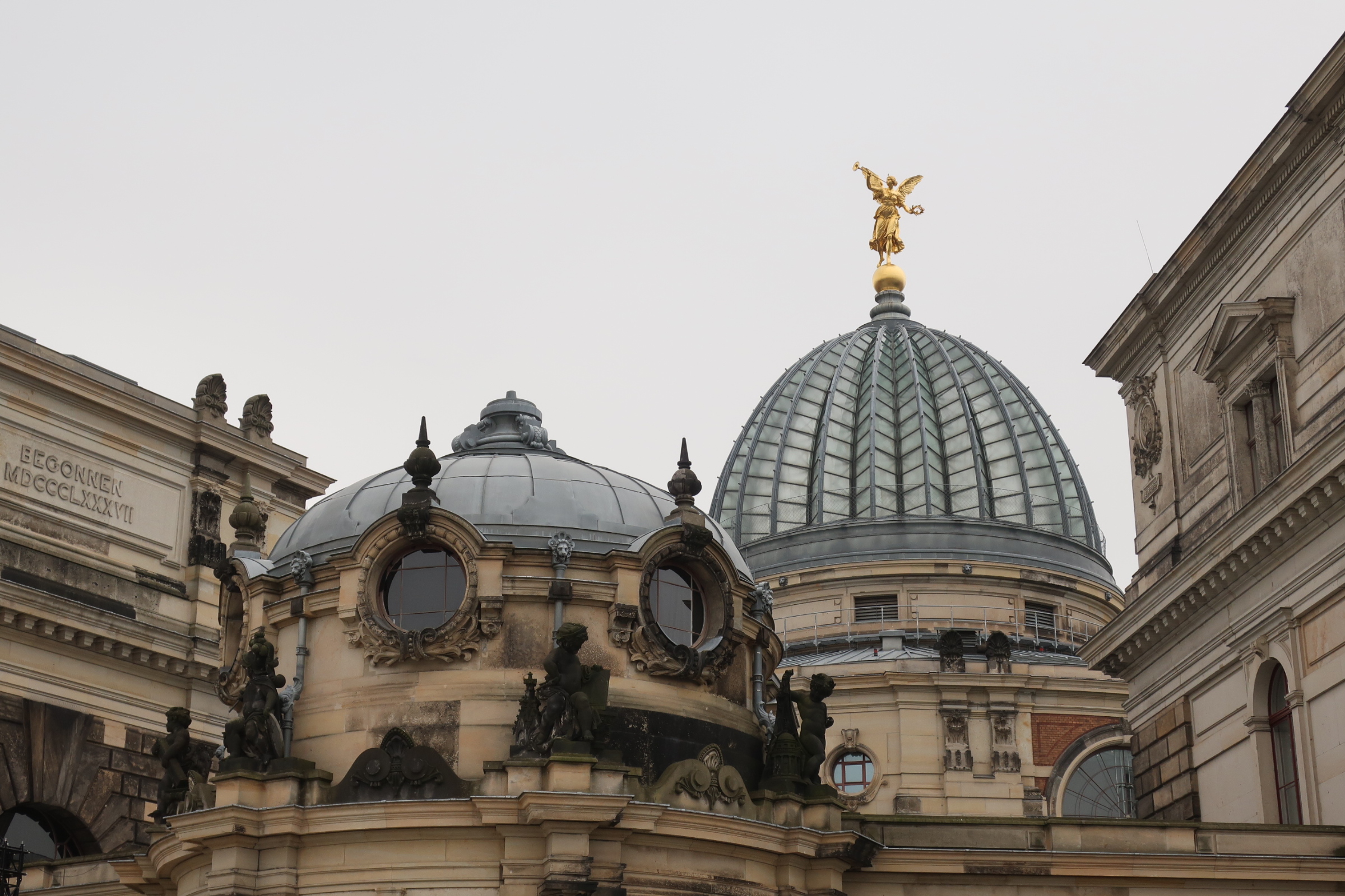 Vorbei an der Semper Oper gehen wir zu den Brühlschen Terassen. Die Wolken hängen tief, das Licht ist mal hell, mal trüb. Über die Elbe blicken wir hinüber auf die Neustadt. Gerade als wir in Richtung Frauenkirche abbiegen, fängt es an leicht zu regnen. Bunte Schirme kommen zum Vorschein. Ein Aufstieg auf den Turm lohnt sich gerade nicht. Also ist Mittagspause angesagt. In den Passagen gegenüber entdecken wir, dass heute Museumsnacht ist. Perfekt für uns, um überall mal rein zuschauen. Also gleich Tickets sichern.