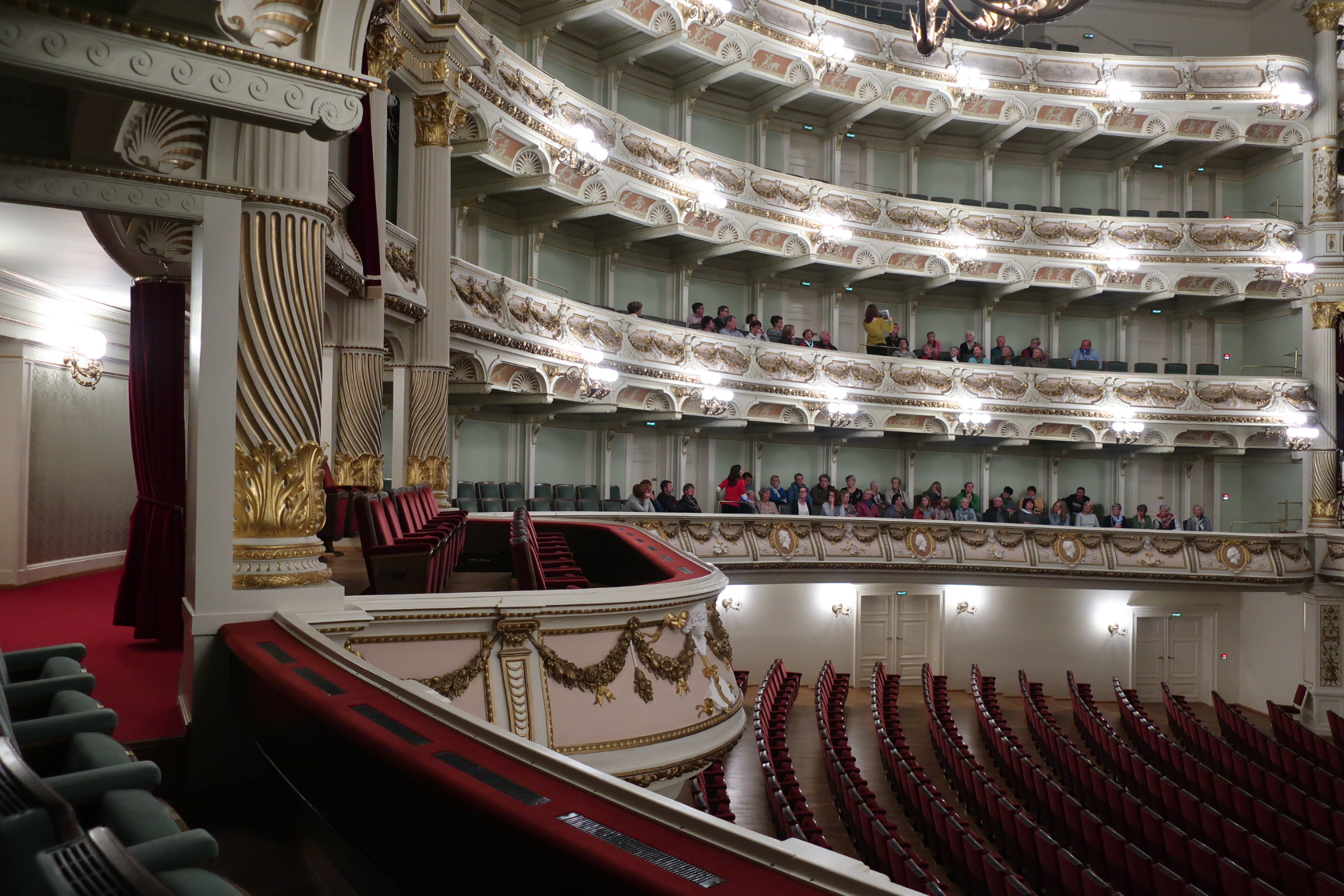 Die Semper Oper ist wunderbar ausgeschmückt und verziert. Die Rundgalerie lädt zum Verweilen zwischen den Vorstellungen ein. Der Opernsaal mit seinem großen Leuchter ist beeindruckend. Hier steckt viel Planung und Technik drin,um den Besuchern ein optimales Klangerlebnis zu bieten. Man kann sich gut vorstellen, wie eine Aufführung hier wirken muss.