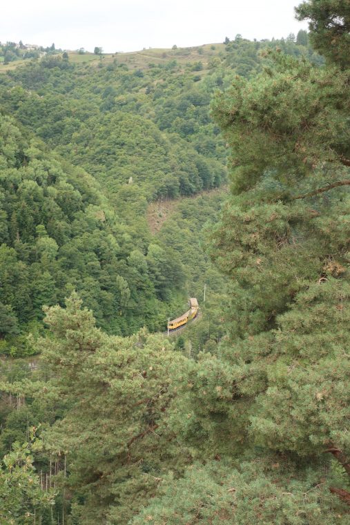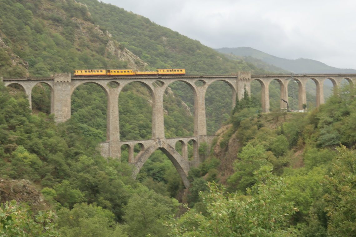 Auf der Fahrt zu unserem nächsten Ziel treffen wir den berühmten “Train Jaune”, den beliebten Zug der hier durch die Berge fährt.