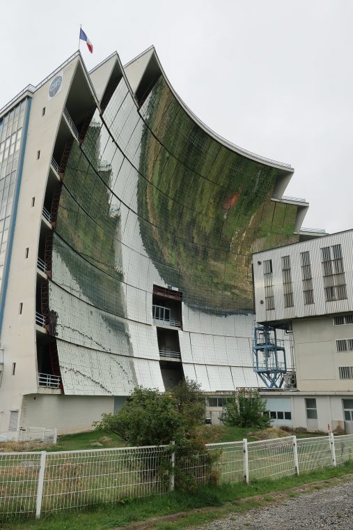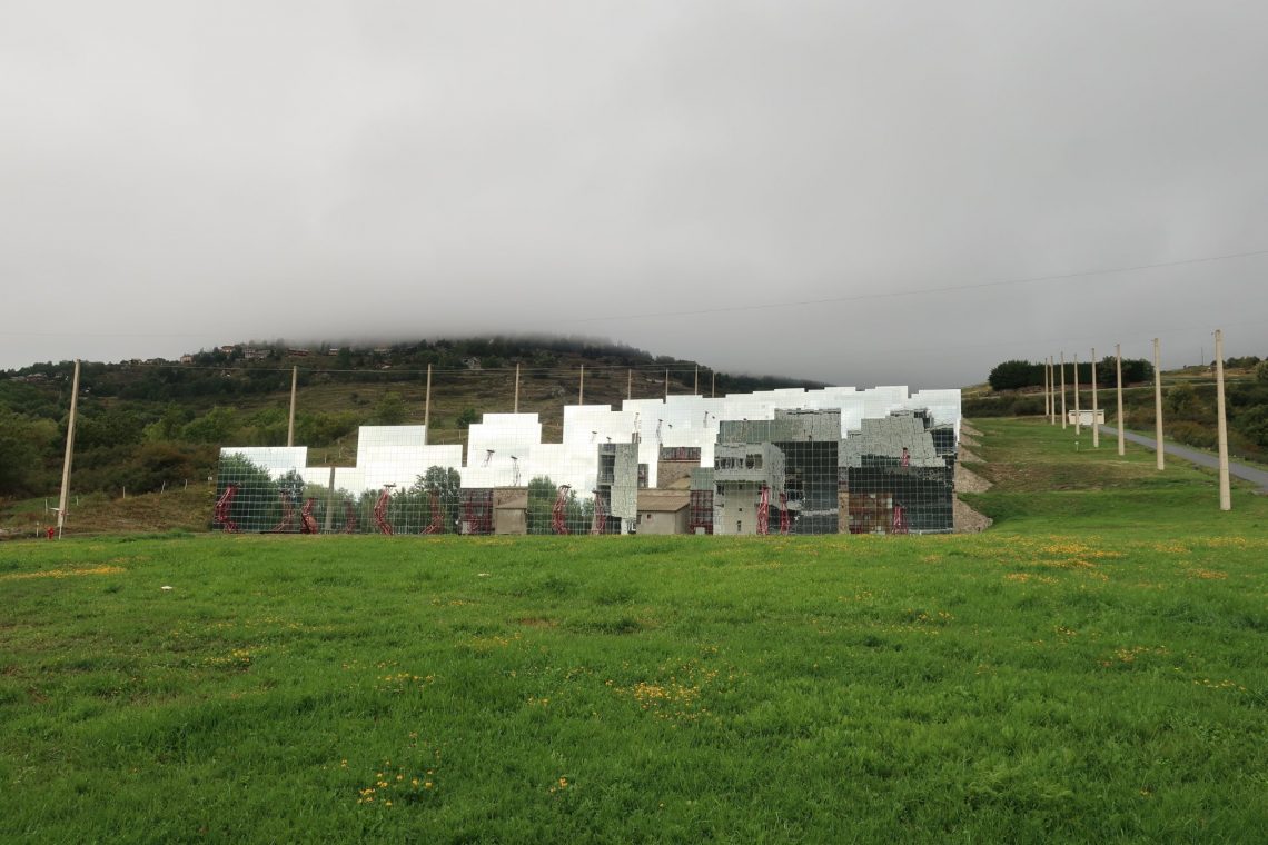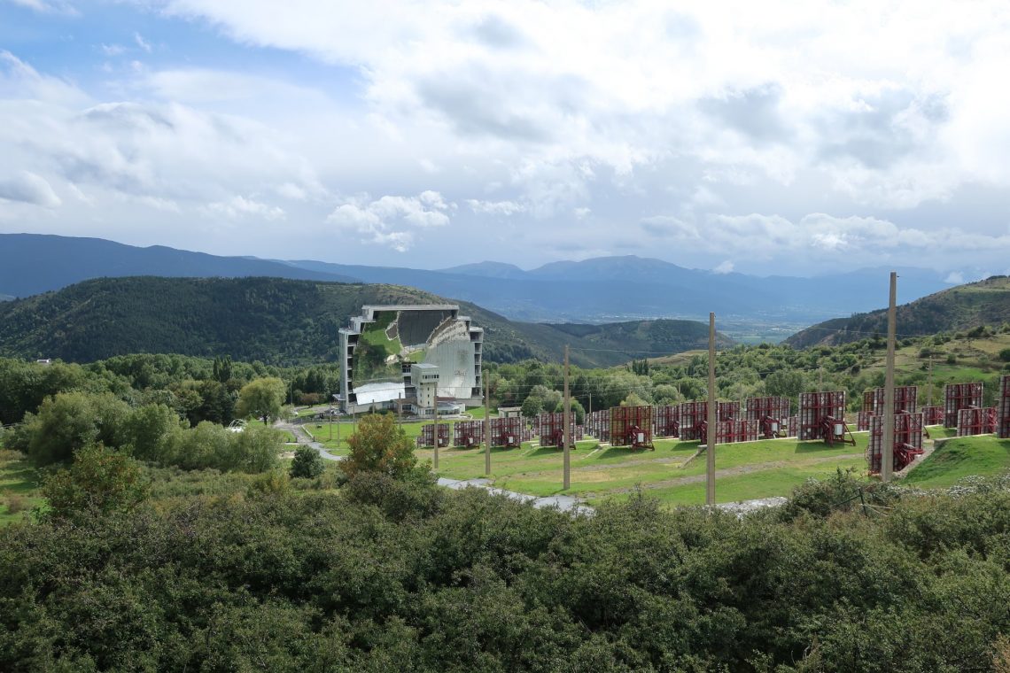 Etwas weiter die Straße in die Pyrenäen hinein kommt der Ort Odeillo. Der Ort hat 3000 Sonnenstunden im Jahr (was sehr viel ist – und heute ist einer der wenigen Tagen mit kaum Sonne). Deshalb würde hier 1969 ein großer “Sonnenofen” zu Forschungszwecken gebaut. Mit groß meine ich wirklich groß! Ein Hochhaus, das gleichzeitig als Büro Gebäude dient hat eine konkave Fläche bedeckt mit Spiegeln. Gegenüber am Hang werden auf Spiegelflächen die Sonnenstrahlen eingefangen und auf den großen Spiegel geleitet. Dort gebündelt erhitzen sie den Ofen bis auf 3000 Grad. Das Zentrum wird vor allem zur Forschung genutzt, wie man Sonne zur Energie Gewinnung nutzen kann. Ebenso laufen Tests zu hitzebeständigem Material (z.B. für die Raumfahrt).