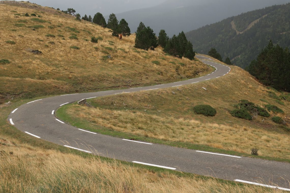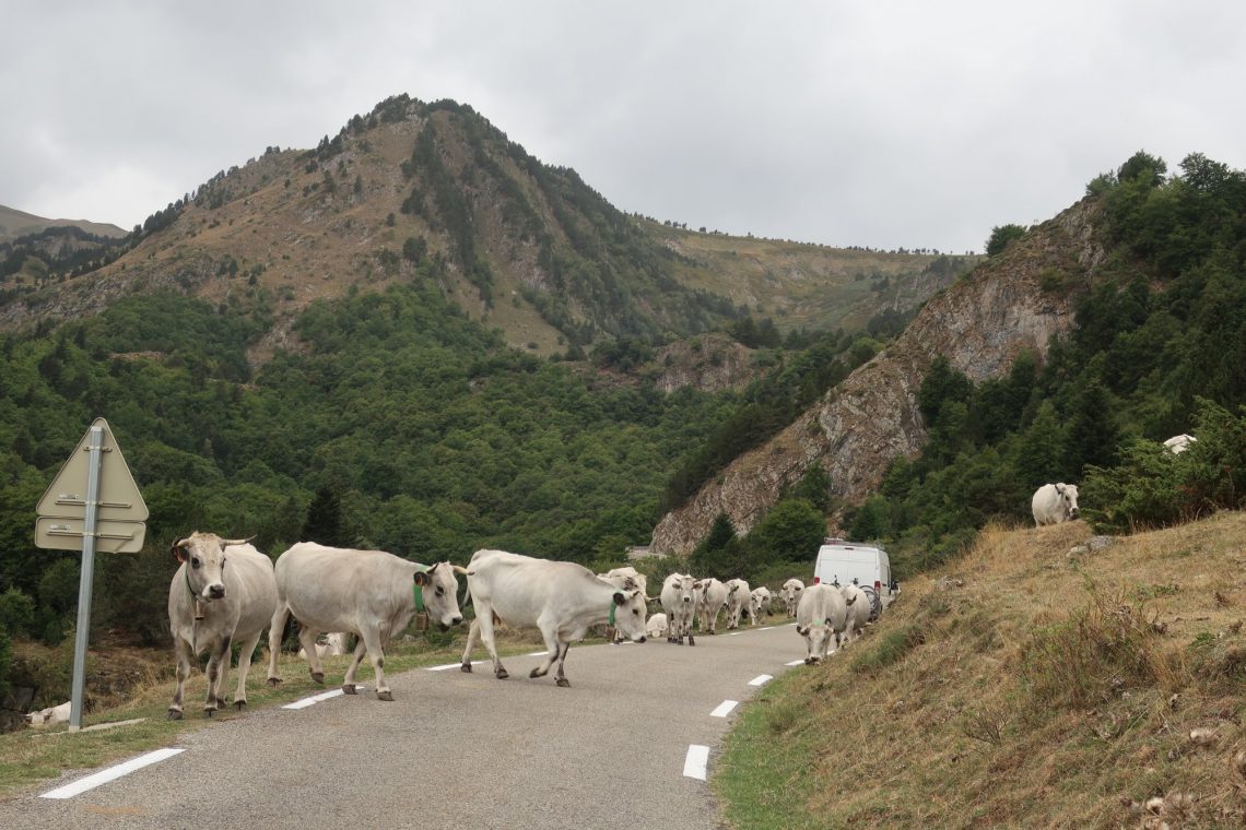 Zum Abschluss des Tages fahren wir über den Pass Col de Pailhères. Die kleine, teils einspurige Straße schlängelt sich den Berg hinauf durch eine wunderbare Landschaft. Rinder und Pferde weiden hier und sind schon auch Mal auf der Straße unterwegs. (Pferde haben ebenfalls Glocken!) Über die D118 geht es bis Rouze (auch eine tolle Strecke) und von dort biegt man auf die Passstraße D25 ein, die nach Ax-les Thermes führt. Der Kurort hat auch schon bessere Zeiten gesehen. Wir entscheiden uns etwas nördlich in Foix zu übernachten.