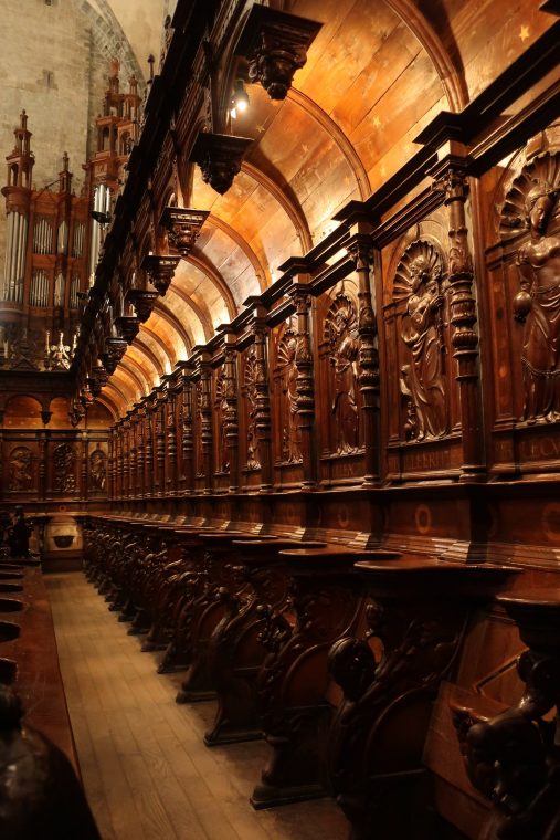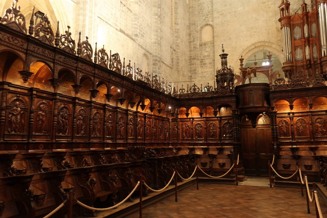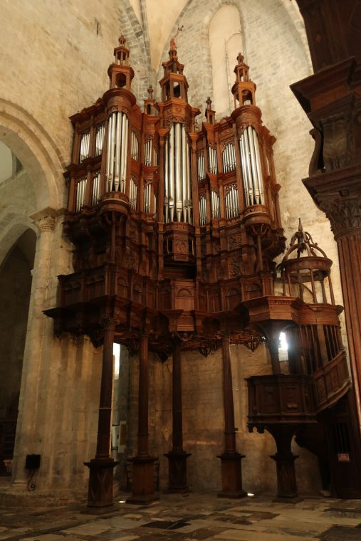 Zum Abschluss des Tages gab es noch eine Überraschung: Die Kathedrale von Saint-Bertrand-de-Commings ist beeindruckend. Die Orgel steht auf Stelzen und ist 16m hoch. In der Mitte der Kirche ein Chorgestühl mit wunderbaren Schnitzereien. Eine Kirche in der Kirche. Natürlich darf ein Kreuzgang nicht fehlen.