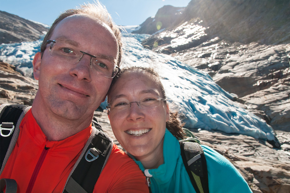 Der Aufstieg hat sich gelohnt. Zurück geht’s den gleichen Weg. Zur Belohnung gönnen wir uns nochmal ein Eis, setzen uns mit Blick auf Gletscher und Fjord ans Ufer und lassen uns die Sonne auf den Bauch scheinen (ja, es hat noch immer unglaubliche 25 Grad).