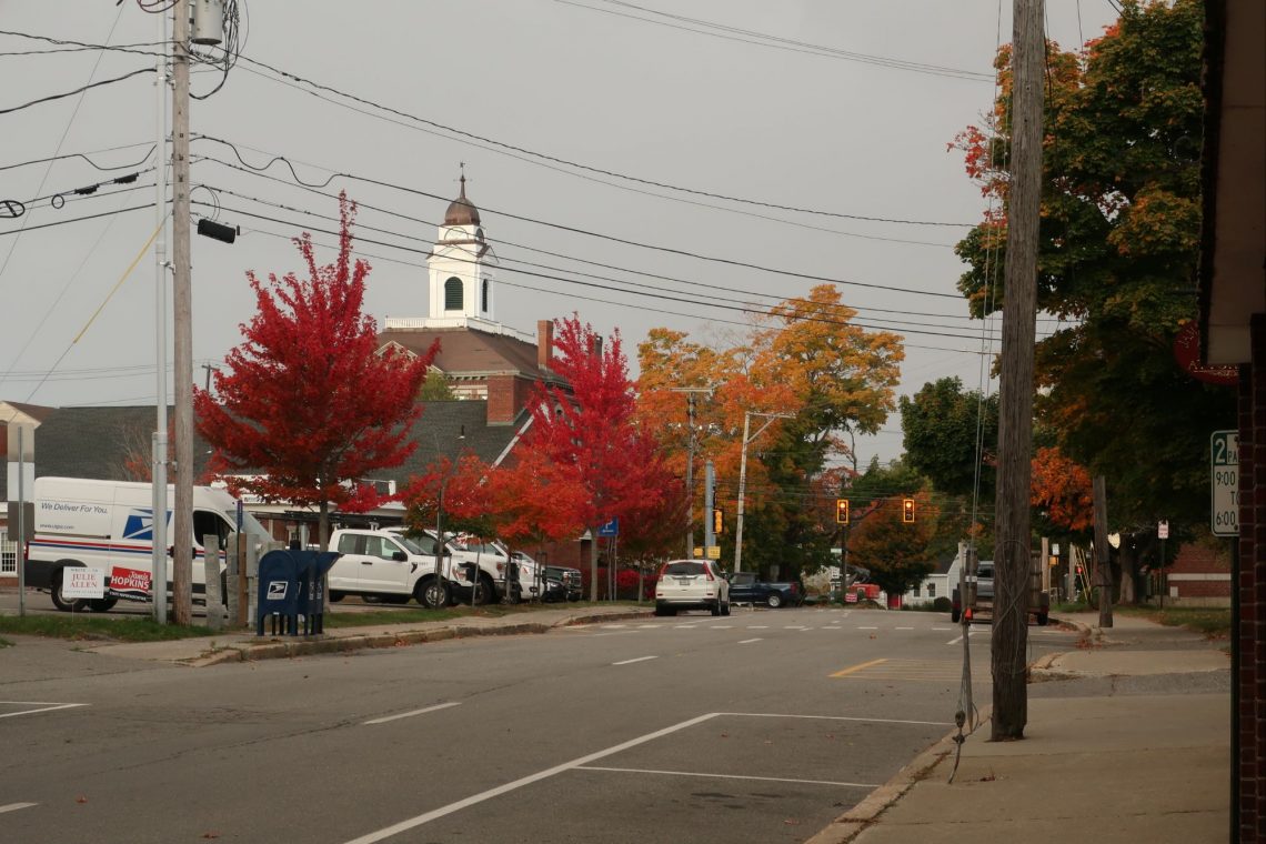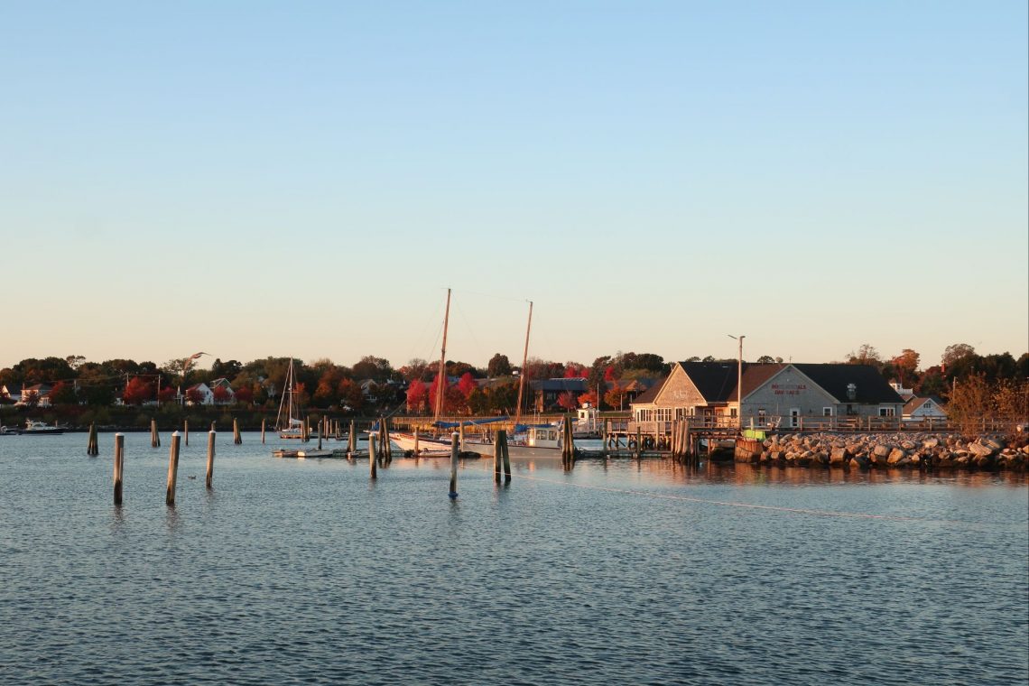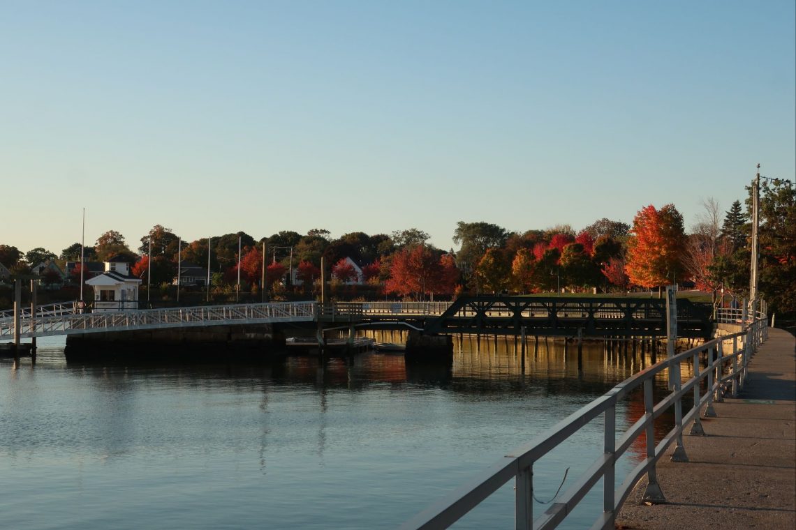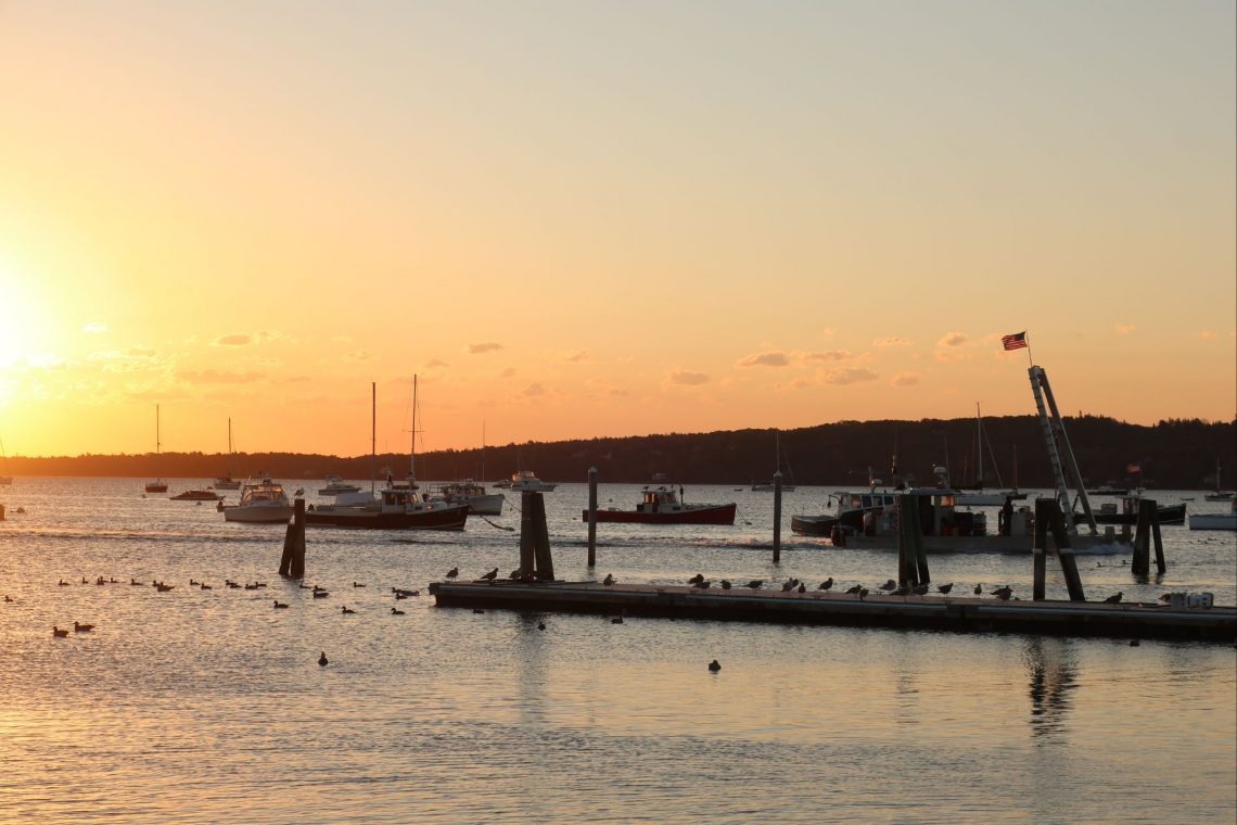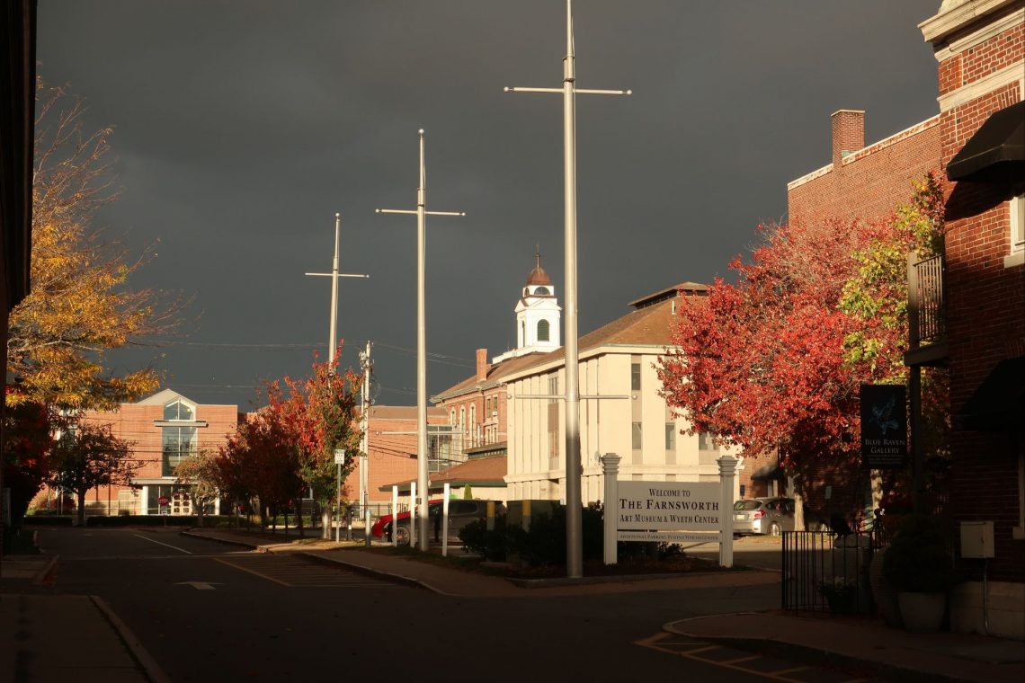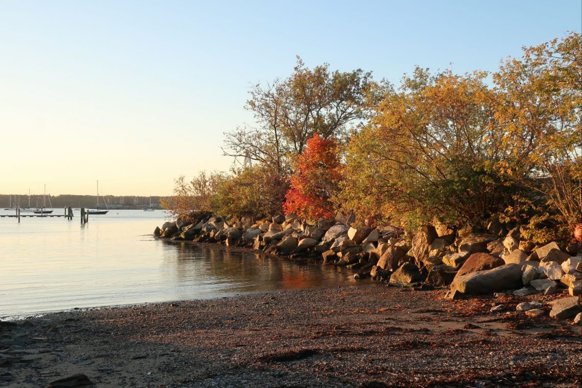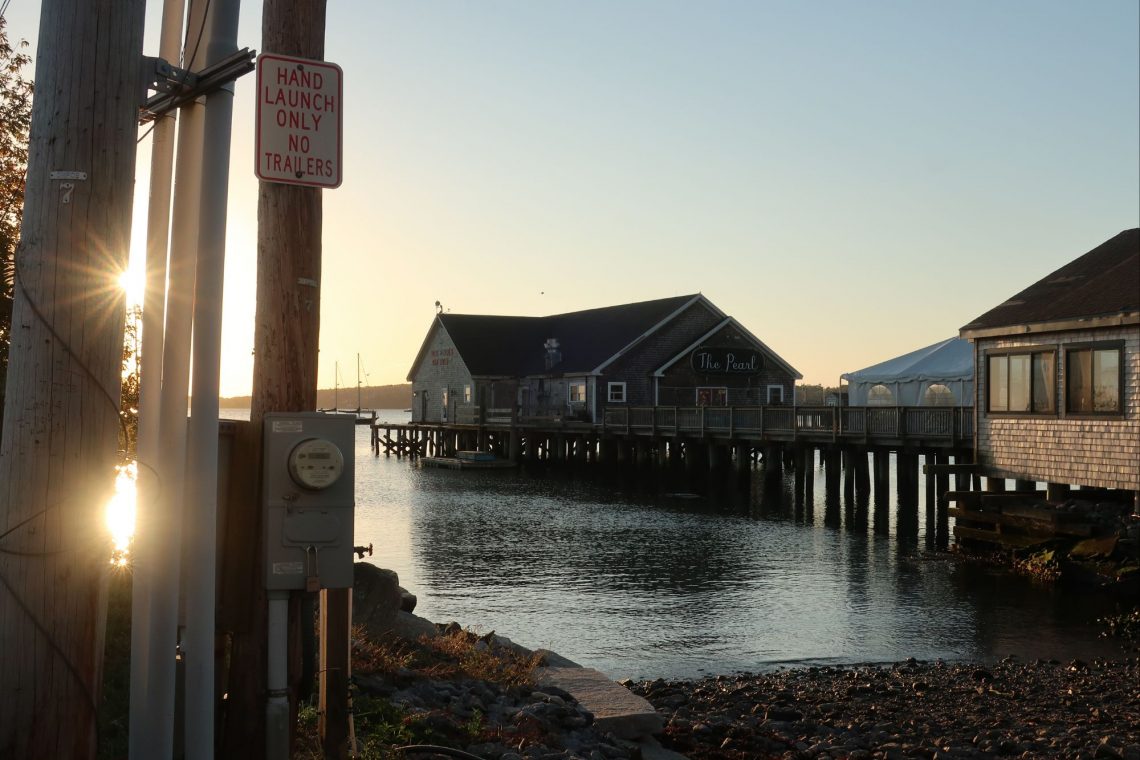 Wir starten mit einem morgendlichen Spaziergang durch Rockland zum Sonnenaufgang. Der Hafen ist schon leer, kaum noch Boote im Wasser, auch die Stege (Schwimm-Pontons) liegen am Ufer. Der Winter kann kommen. Es ist ruhig, schon relativ warm. Am Rückweg kommen wir in einen kurzen Regenschauer, doch ist der nur von kurzer Dauer. Die Sonne spitzt schon gleich wieder hinter den Wolken hervor. Es ist windig, fast schon stürmisch, aber warm. Das heruntergefallene Laub, wird aufgewirbelt. Schnell knirscht etwas sind zwischen den Zähnen. Der Wind dreht ständig, so dass er gefühlt aus allen Richtungen kommt. Die Blätter wirbeln auch im Kreis, ab und zu pustet sie eine Böe in die Luft.