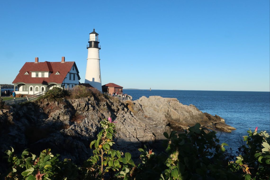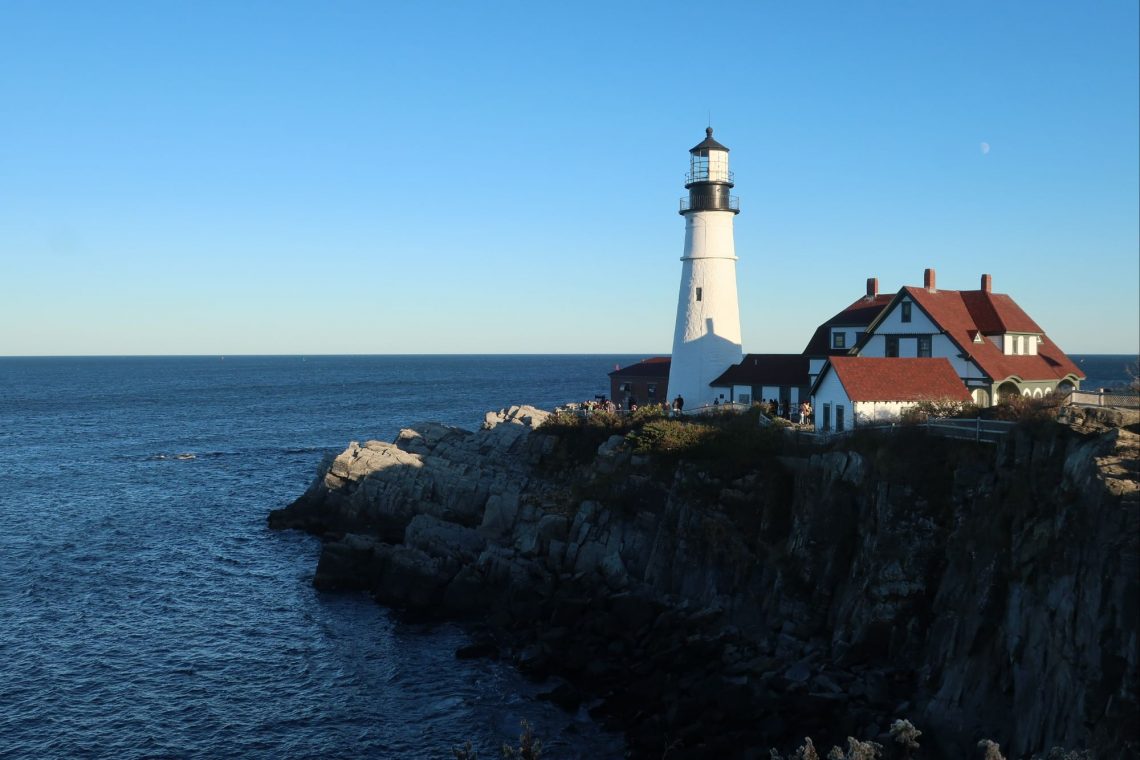 Zum Sonnenuntergang sind wir an den Leuchttürmen in Maine. Erst den Leuchtturm am Cape Elizabeth, dann den Portland Headlight. Eigentlich wollten wir Bilder vom Sonnenuntergang machen, doch der Park rund um den Leuchtturm schließt bereits pünktlich um 18 Uhr zum heutigen Sonnenuntergang.