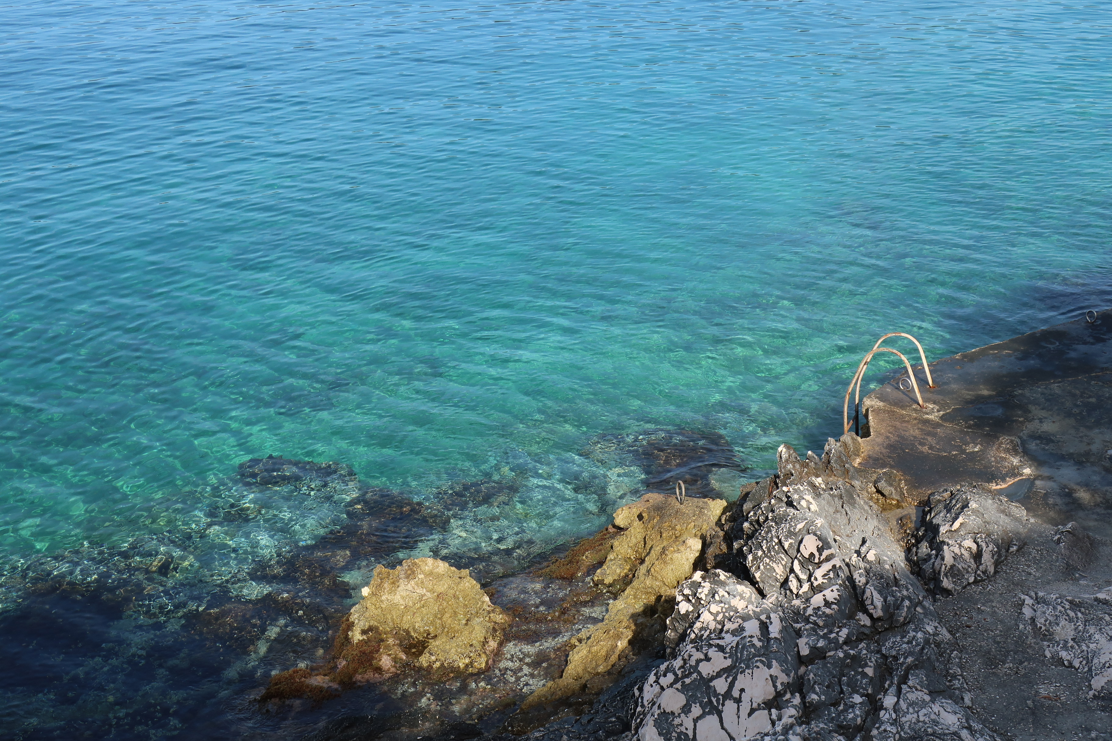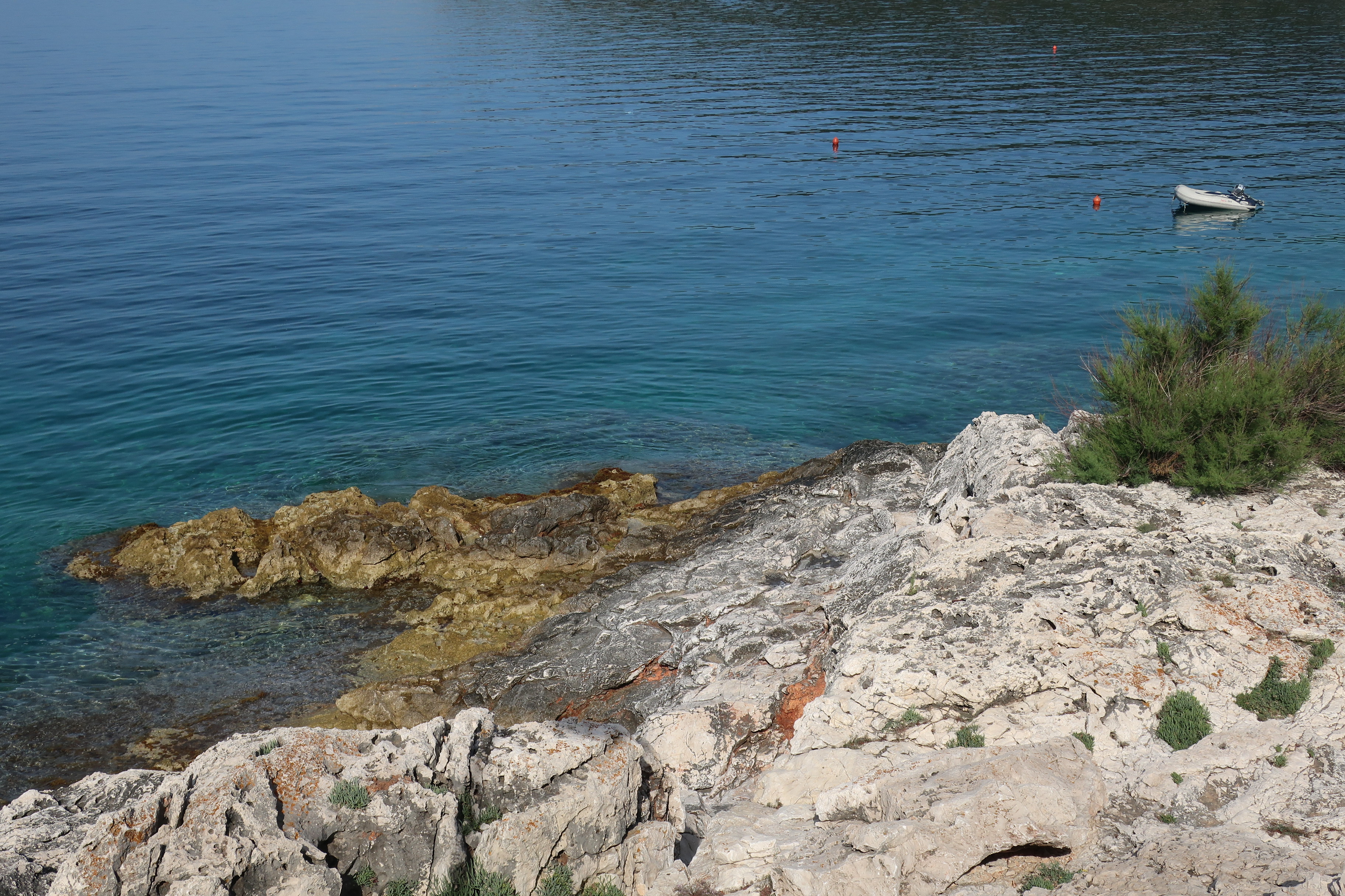 Morgens am Meer. Es ist ruhig. Nur das Wasser rauscht leise vor sich hin. Wir sitzen am Ufer und frühstücken. Herrlich.