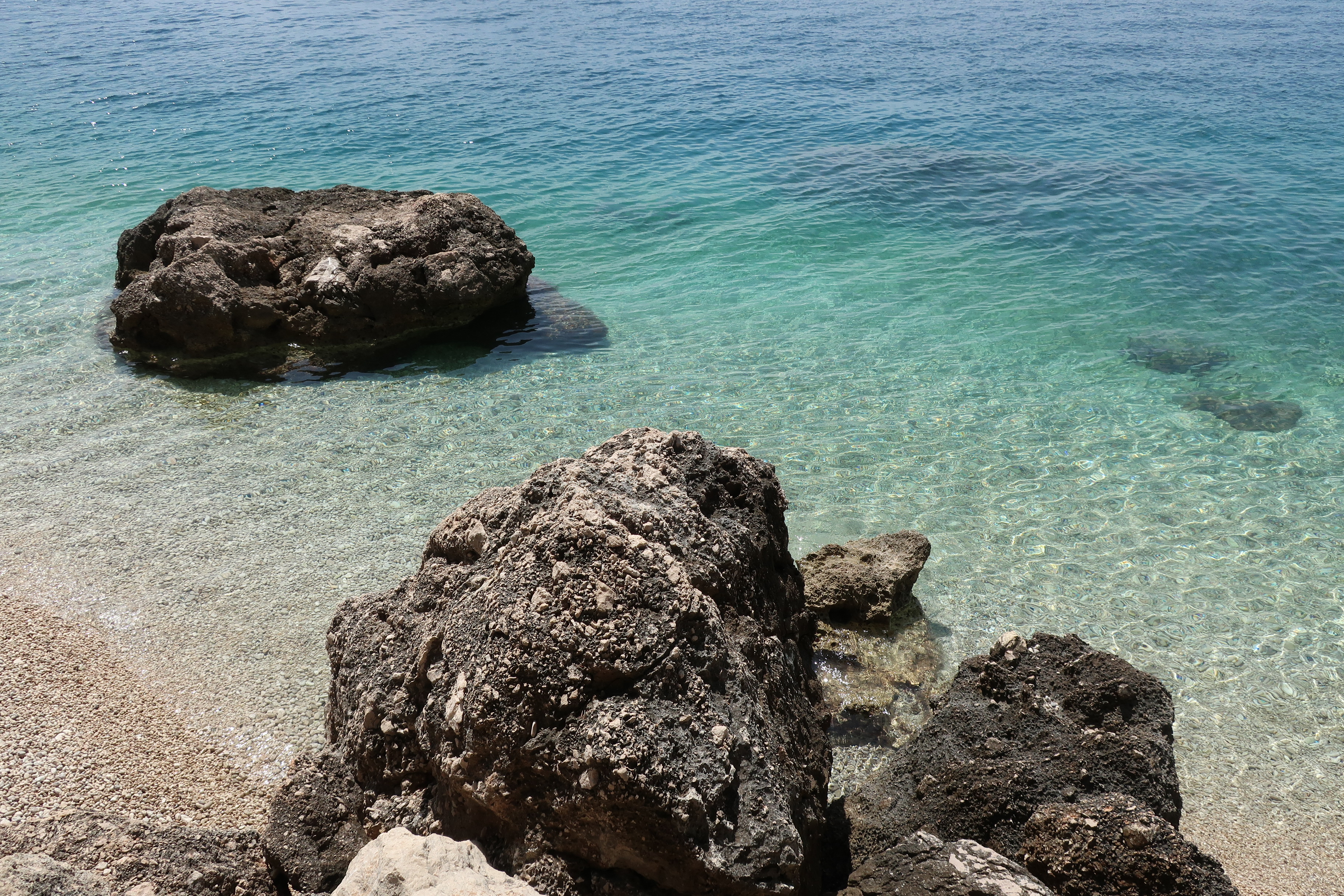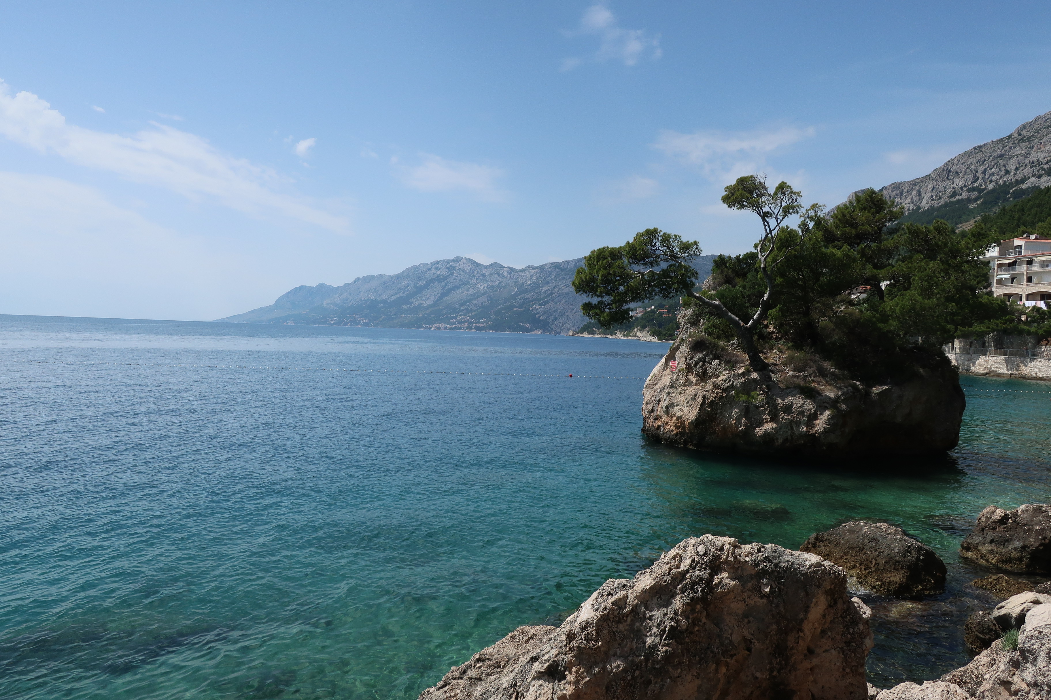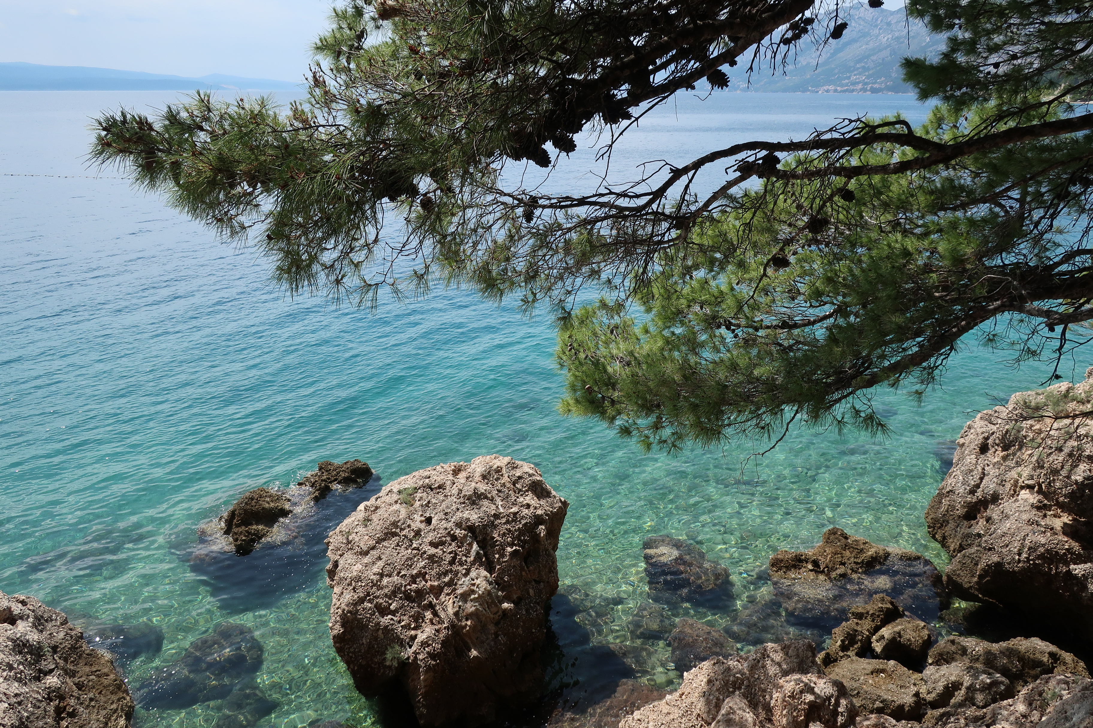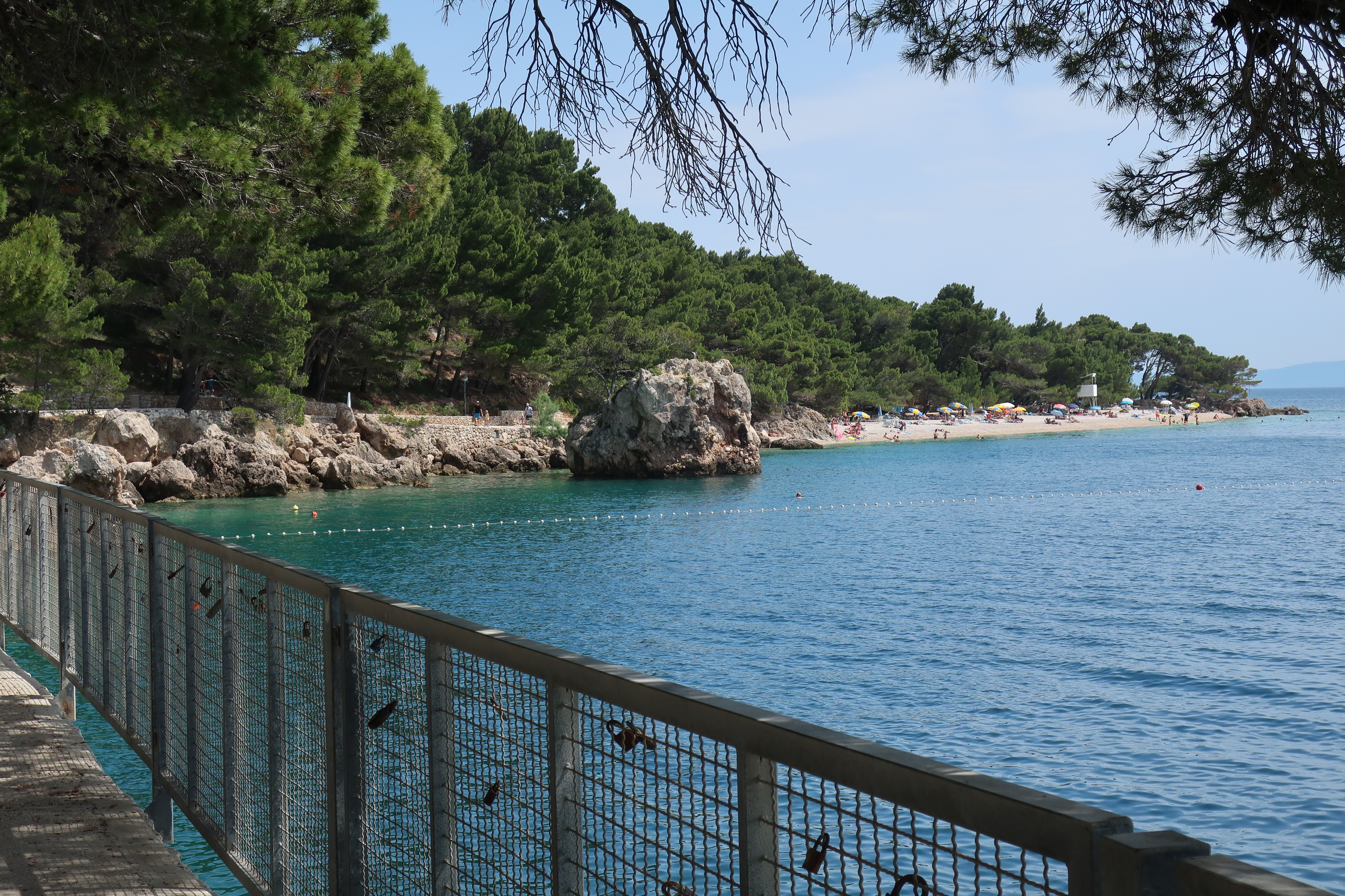 In Brela legen wir einen Zwischenstopp am Strand ein. Der feine, weiße Kieselstrand soll zu den schönsten Stränden Europas gehören. Also Bikini und Badehose an und rein ins Strandvergnügen.