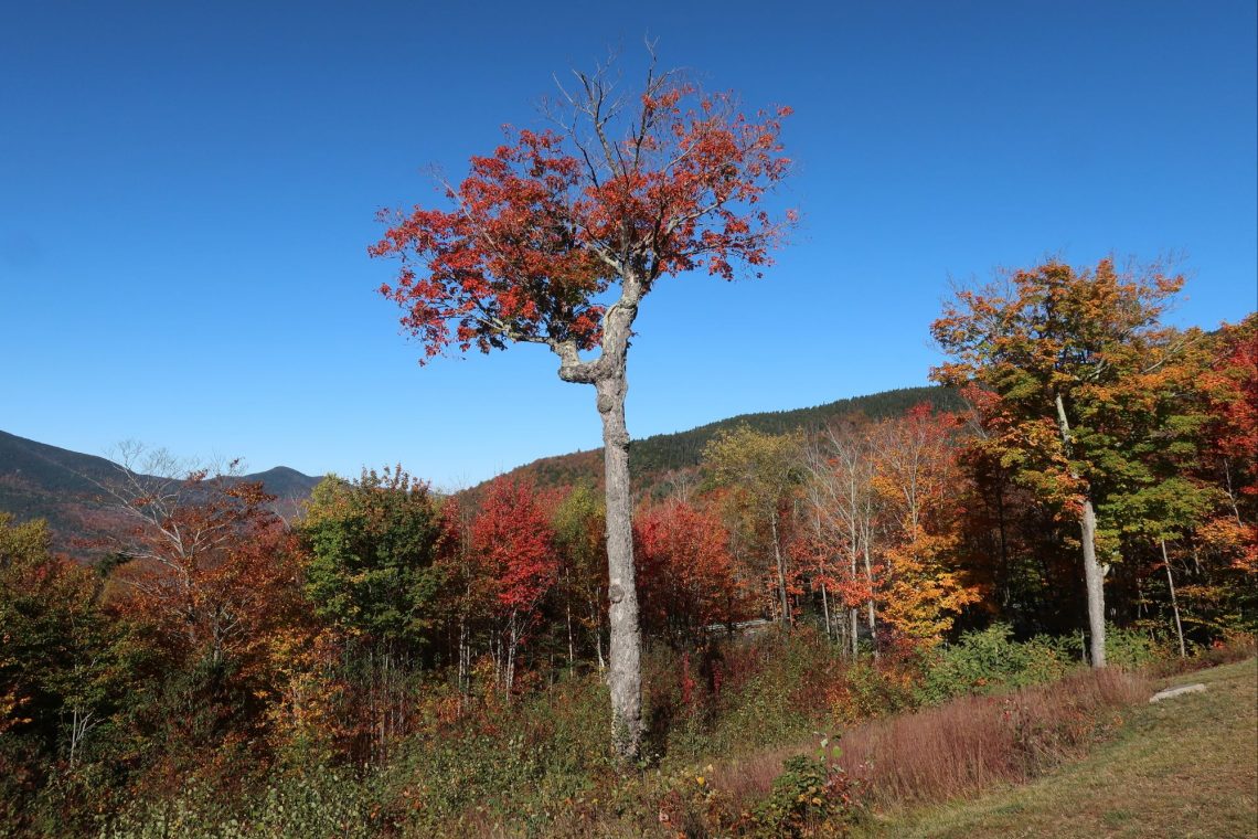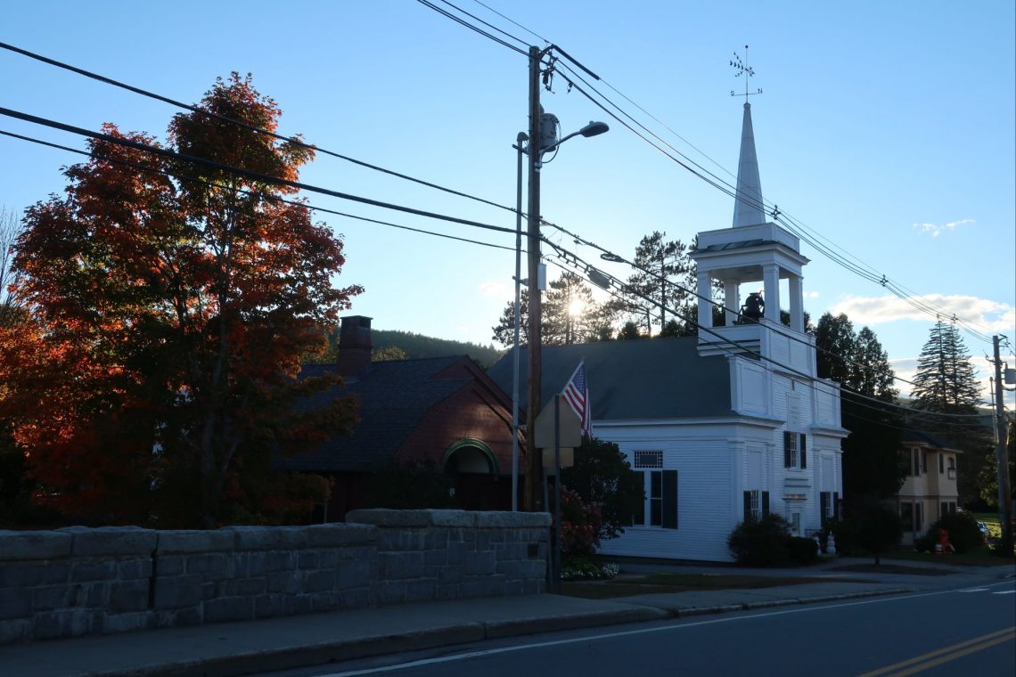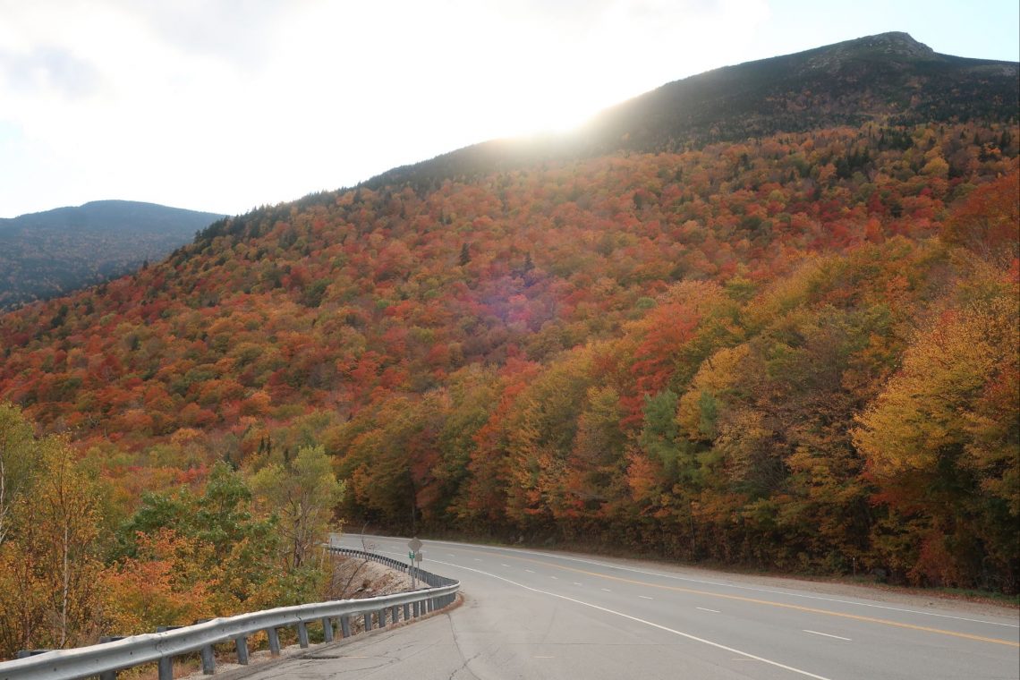 Weiter westlich fahren wir in der untergehenden Sonne durch die Crawford Notch. Die Berghänge sind gleißend rot in untergehenden Sonne. Bunte, herbstliche Bäume soweit das Auge reicht.