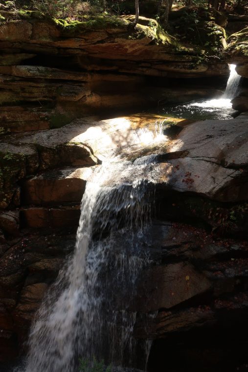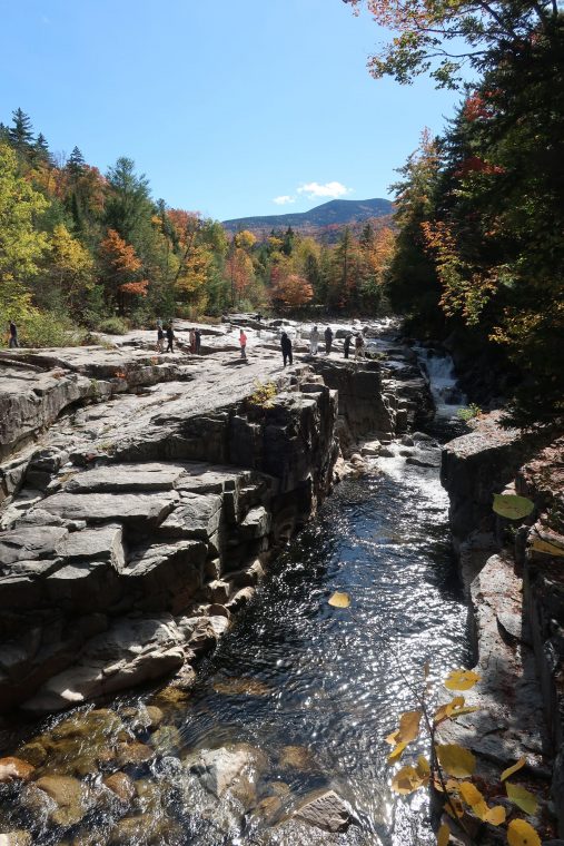 Der Kancamagus Pass ist mit 2855 Fuß der höchste Punkt des Scenic Byways. Auf der Passhöhe muss natürlich das obligatorische Foto gemacht werden. Ein Pärchen legt dabei besonders Wert auf das perfekte Bild und erklärt der Person, der sie ihr Handy in die Hand gedrückt haben: “Make sure that my boots are in it” (wir sprechen von schwarzen kniehohen Lederstiefeln zum eleganten schwarzen Minirock).