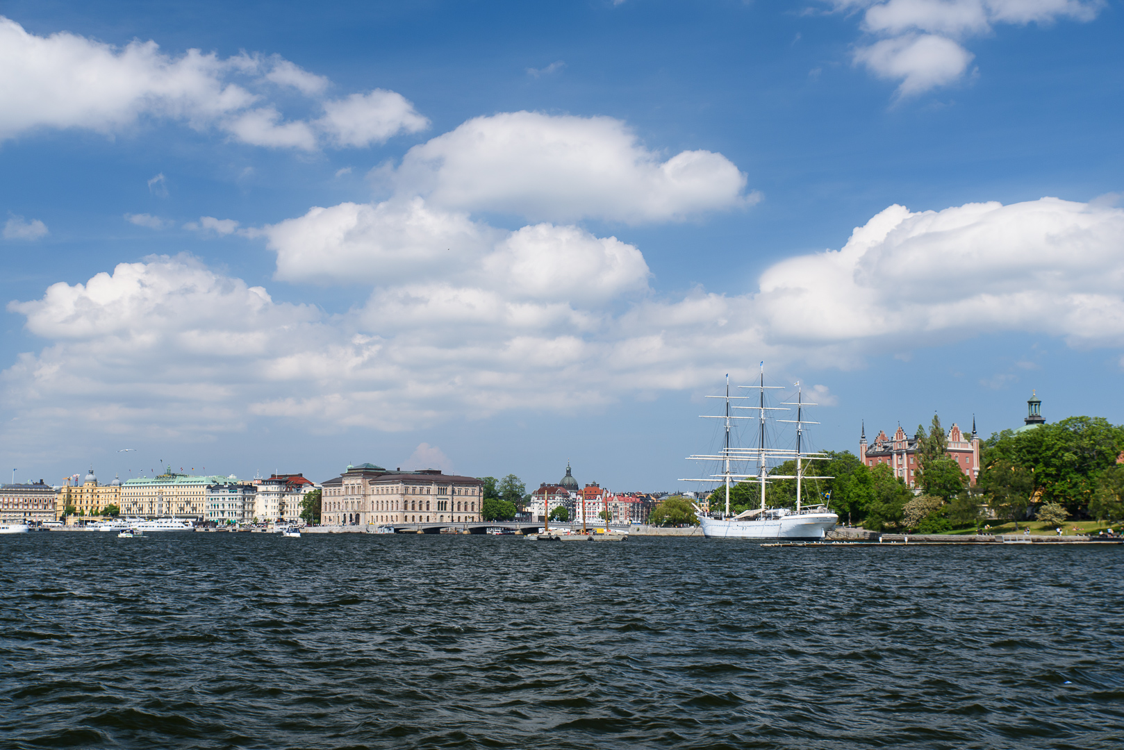 Nach einem ausgiebigen Mittagessen im Sjöcafeet, leihen wir uns Fahrräder und radeln 3 Stunden über Djurgarden. Die Sonne strahlt, es ist warm und wir genießen den leichten Fahrtwind. Im Süden halten wir in Waldemarshudde und blicken auf Södermalm – die gegenüberliegende Insel von Stockholm. Durch diesen Meeresarm ist Stockholm auch für große Kreuzfahrtschiffe erreichbar. Weiter nördlich entdecken wir das kleine Schlösschen Rosendahl mit dem netten Café in den Gewächshäusern. Ein toller Platz für eine Kaffeepause mit Kanelbulle (die für hier typische Zimtschnecke). Weiter im Norden fahren wir am Kanal entlang Richtung Osten. Als der Kanal sich zum Meer hin öffnet sieht man die ersten Insel der Stockholmer Schären.