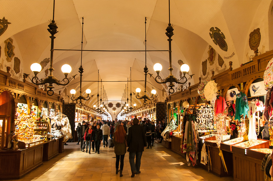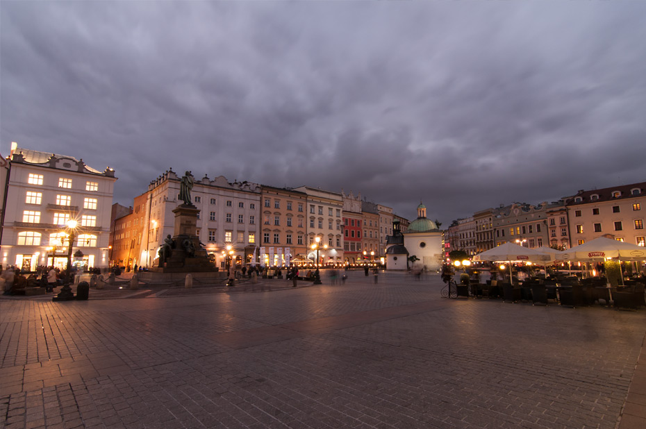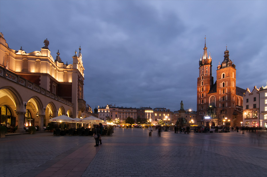 Als es so langsam dunkel wird, gehen wir zurück zum Rynek. Der Platz ist immer noch voller Menschen, auch die Marktstände sind noch geöffnet. Allerdings sind nun weniger Touristen unterwegs. Eher Krakauer auf dem Start in den Samstag abend.