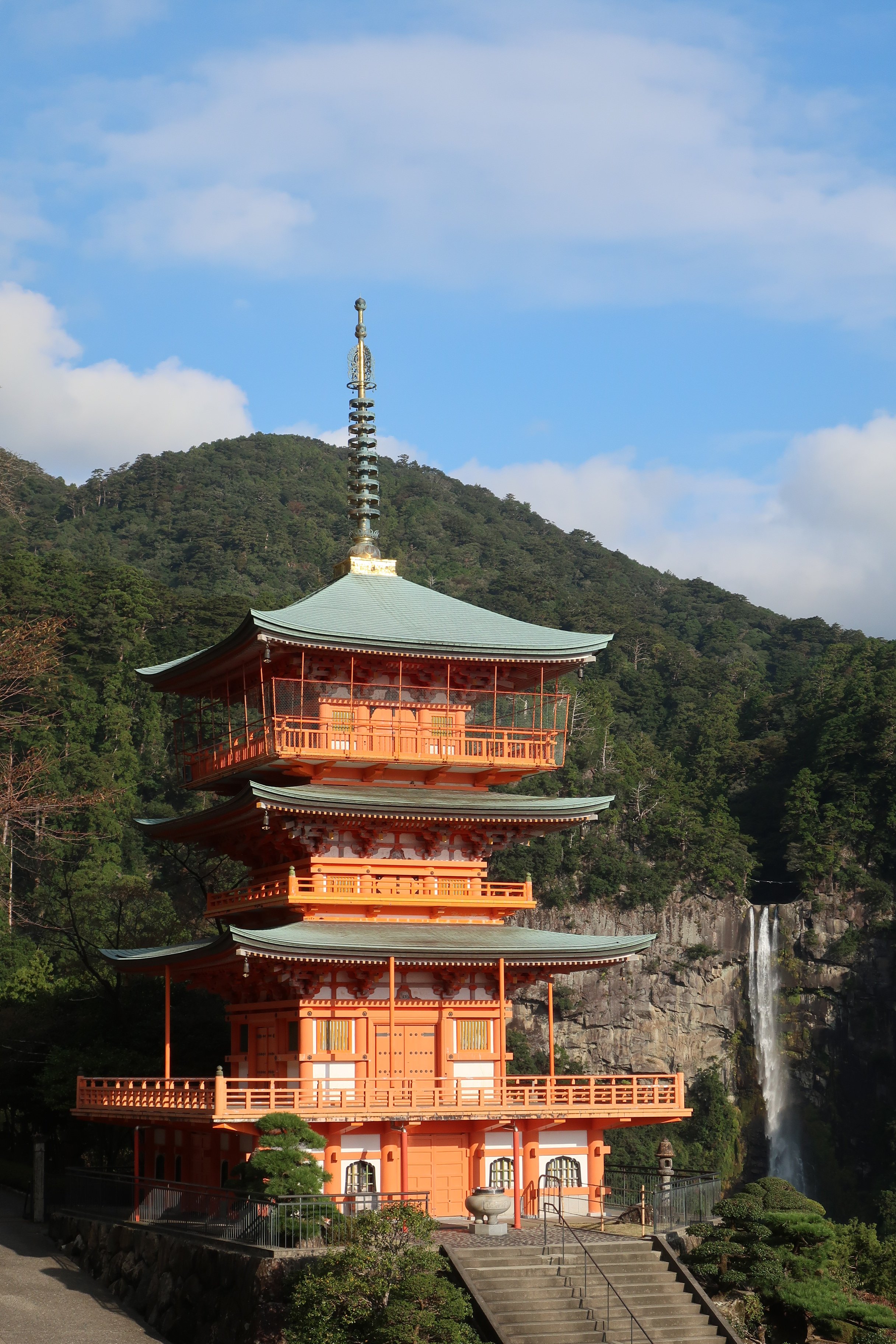 Die Natchi Falls besuchen wir früh morgens im ersten Sonnenlicht. Das klassische Bild mit der roten Pagode ist Pflicht. Danach erkunden wir die Tempelanlage. Leider sind die Hauptschreine des Kumano Natchi Taisha eingerüstet und von außen nicht zu sehen. Das ist schade, aber dennoch hat sich unser Besuch gelohnt.