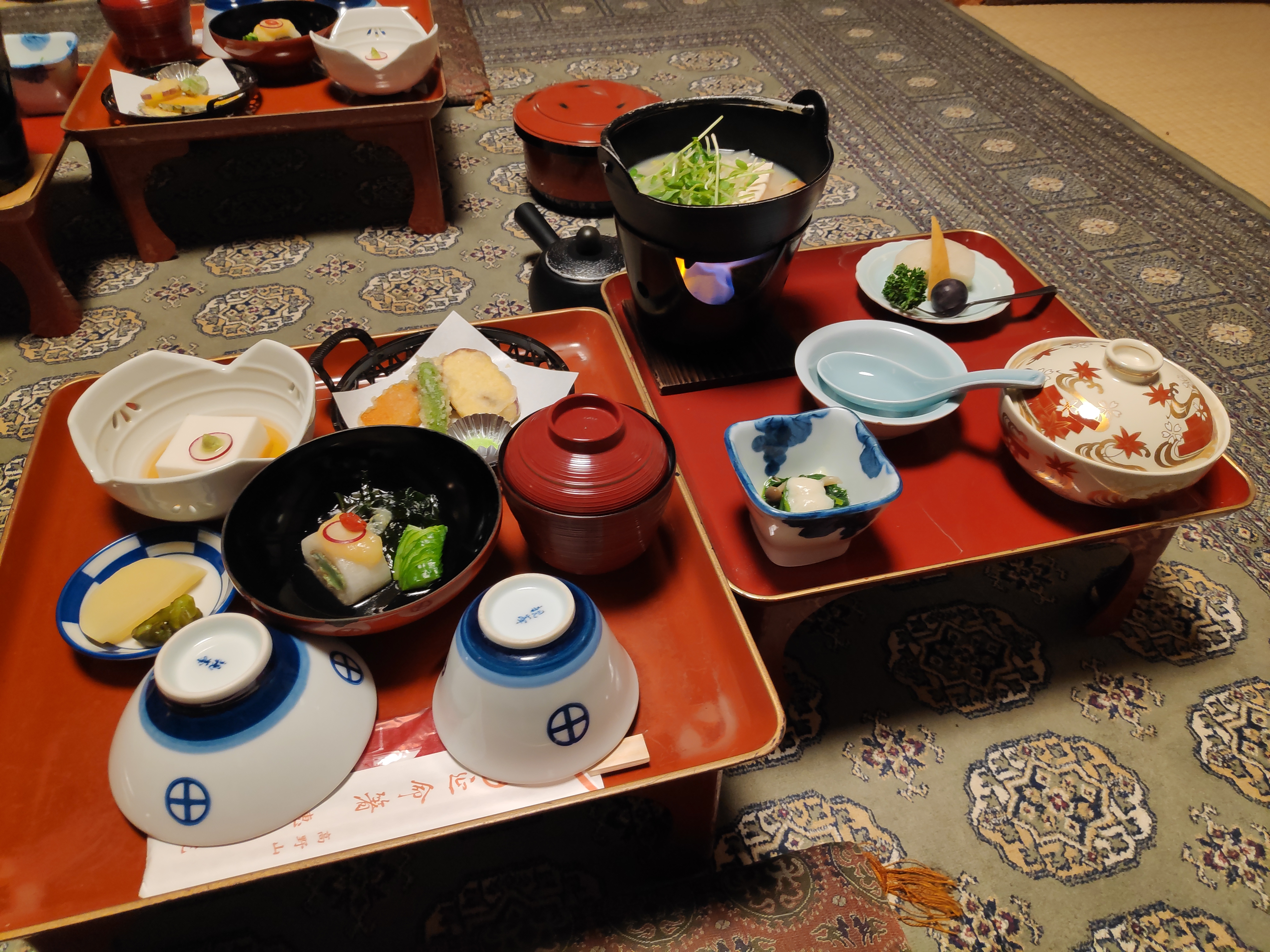 Wir übernachten im Ekoin Tempel. Ein tolles Erlebnis. Zum Abendessen bekommen wir auf unser Zimmer vegane, buddhistische Gerichte. Wunderschön angerichtet in vielen kleinen Töpfchen und Schalen.