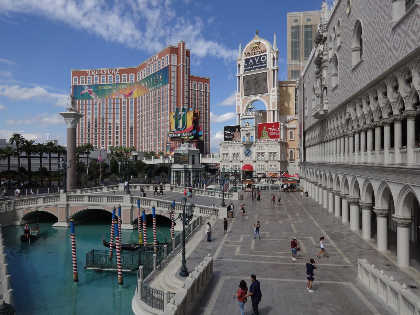 Dann laufen wir los. Von Paris mit seinem Eiffelturm, weiter nach Rom, Caesar besuchen. Dann ein Abstecher in die Moderne – das Linq und der Highroller als neueste Attraktionen. Danach noch einmal Italien – Venedig mit seinem Kanal und den Gondoliere besuchen.