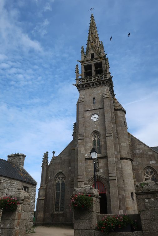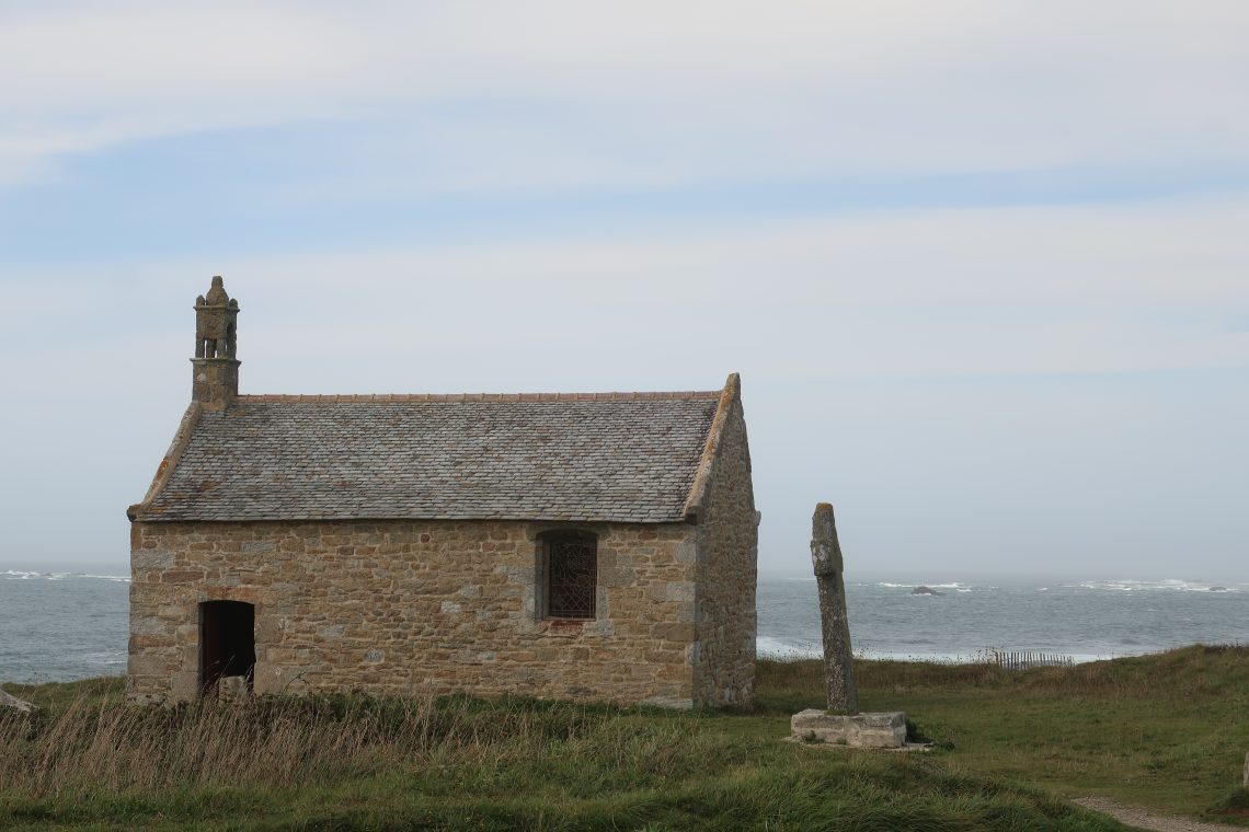 Bei Penfoul startet die “Route Touristique” – eine kleine Küstenstraße – und führt bis Portsall. Eine Überraschung für uns. Kein Reiseführer hat diesen Küstenabschnitt beschrieben. Ein Glück haben wir in der örtlichen Tourist Information zufällig eine Karte der Region gefunden. Die Straße ist absolut lohnenswert, gerade abends ist die Stimmung wunderbar. Es sind nicht mehr viele Menschen unterwegs, die Flut kommt gerade und schlägt hohe Wellen. Das wird von einigen Surfer auch gleich ausgenutzt. Auf dem Weg gibt es noch eine kleine Kapelle am Meer.