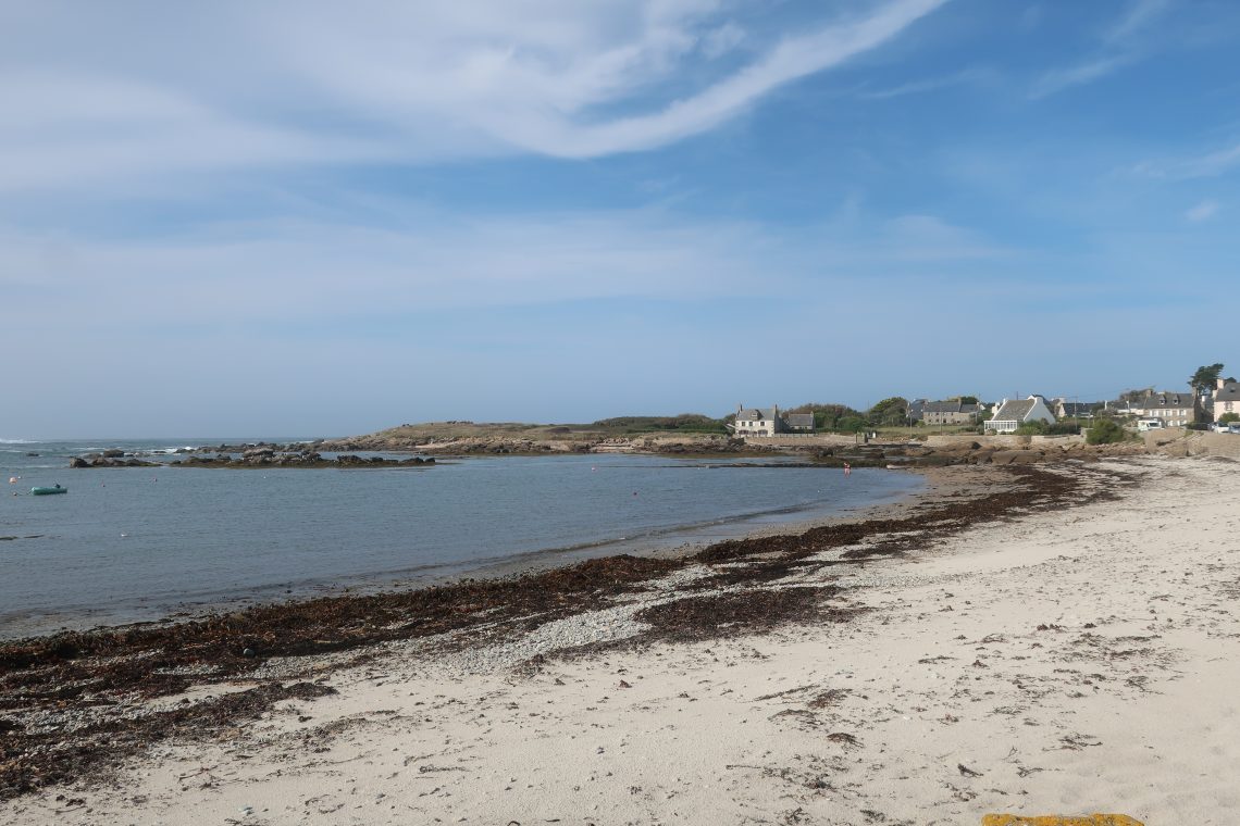 Wir fahren die Küste weiter nordwärts. Der Plage de Melon (zwischen Lanildut und Porspoder) ist besonders schön. Ein Sandstrand mit Blick auf die vorgelagerten Felsen und die Ile de Melon.