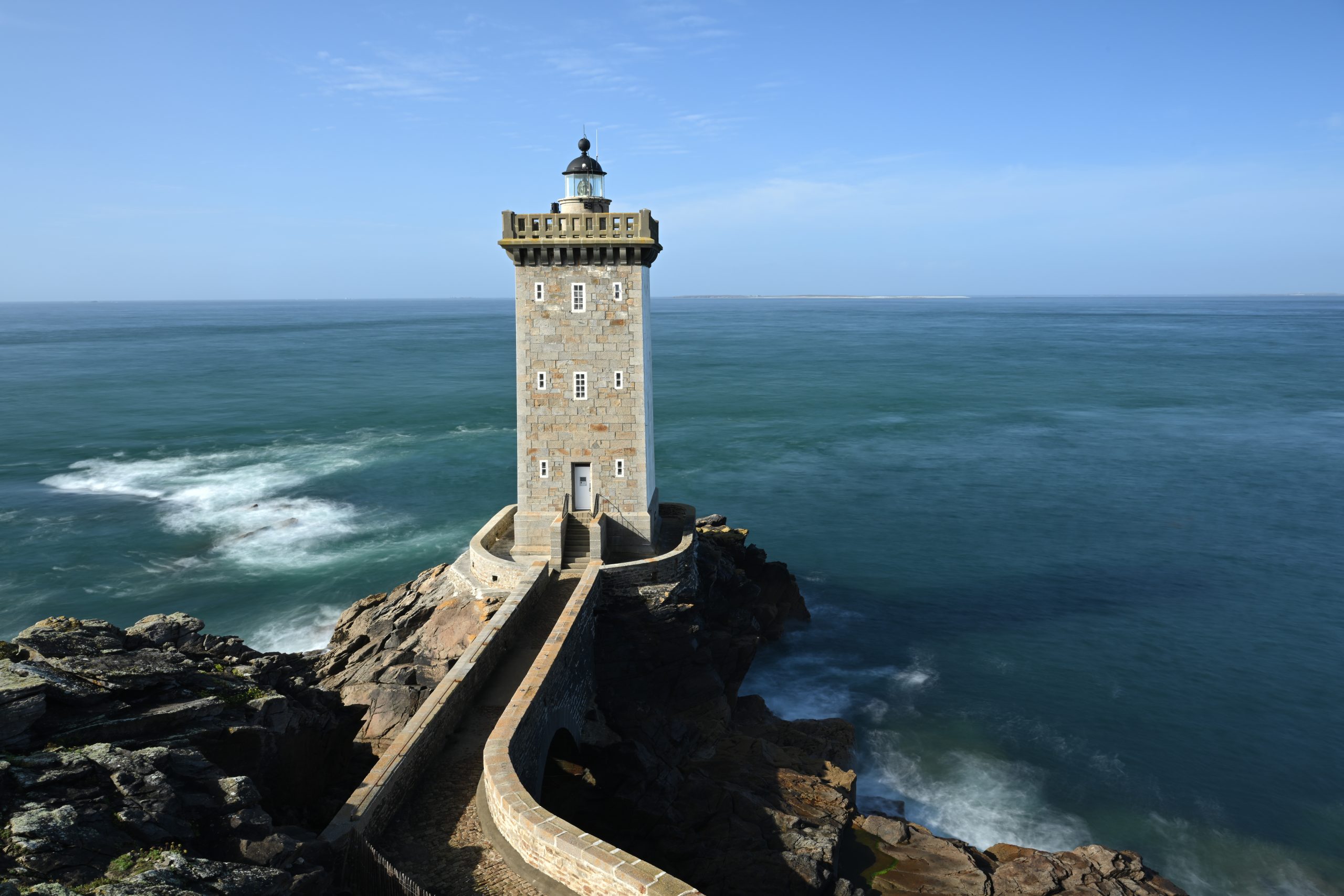 Der Phare de Kermovan steht an der Hafeneinfahrt gegenüber dem Ort Le Conquet. Über einen kleinen Hügel führt ein kurzer Fußweg zum Leuchtturm.