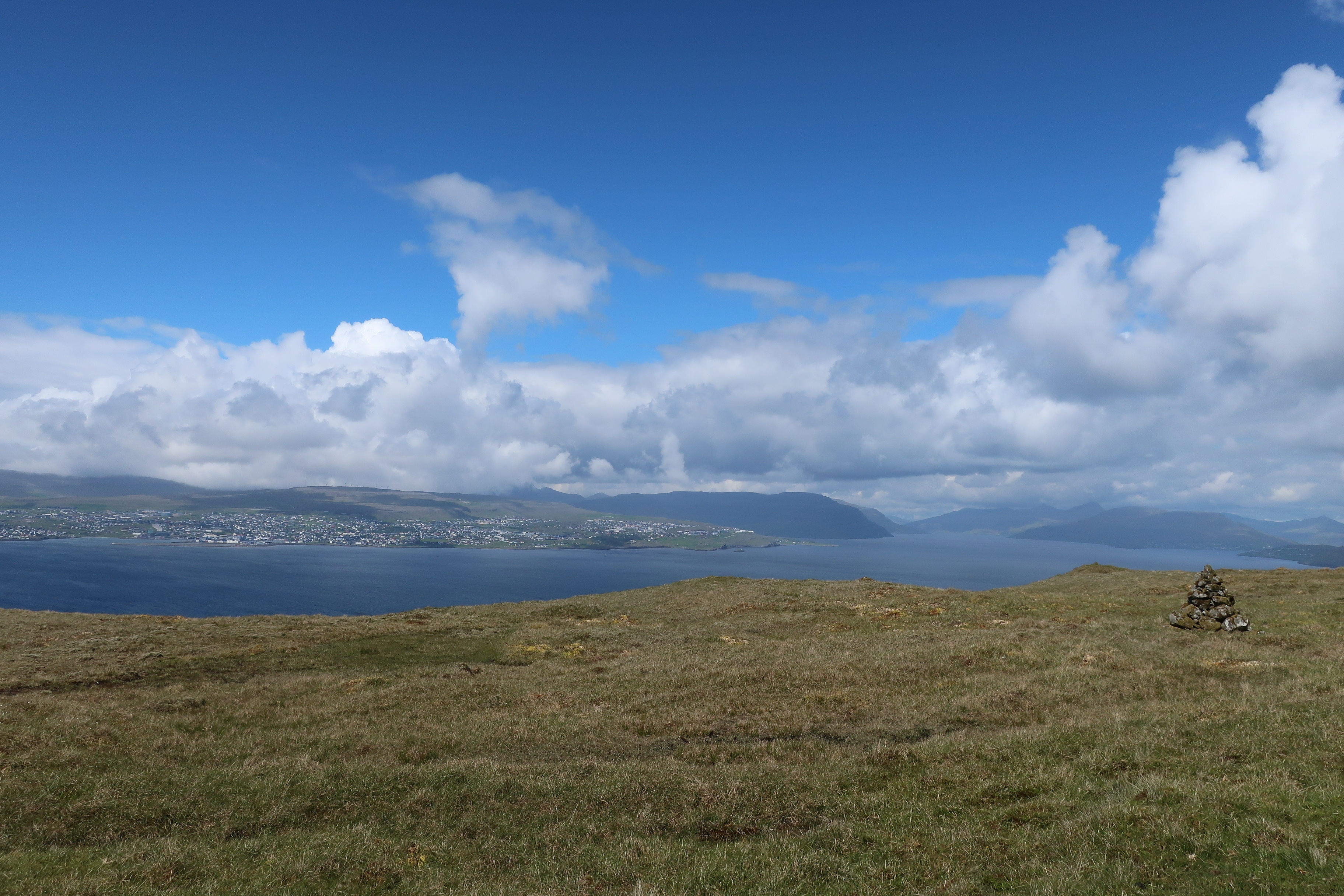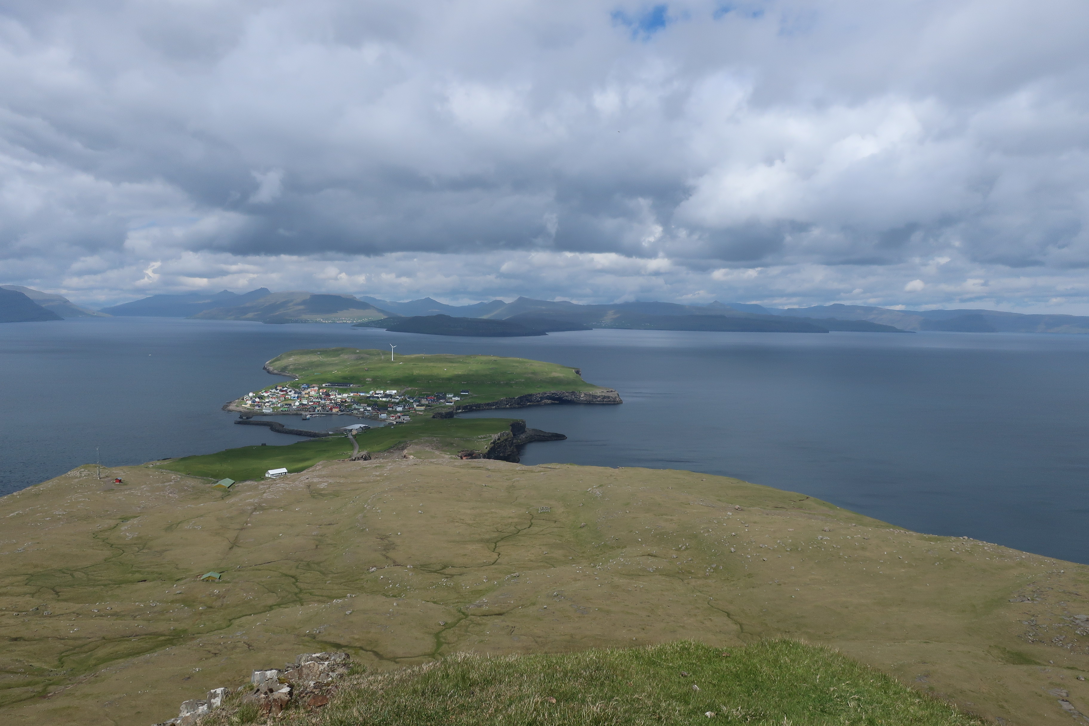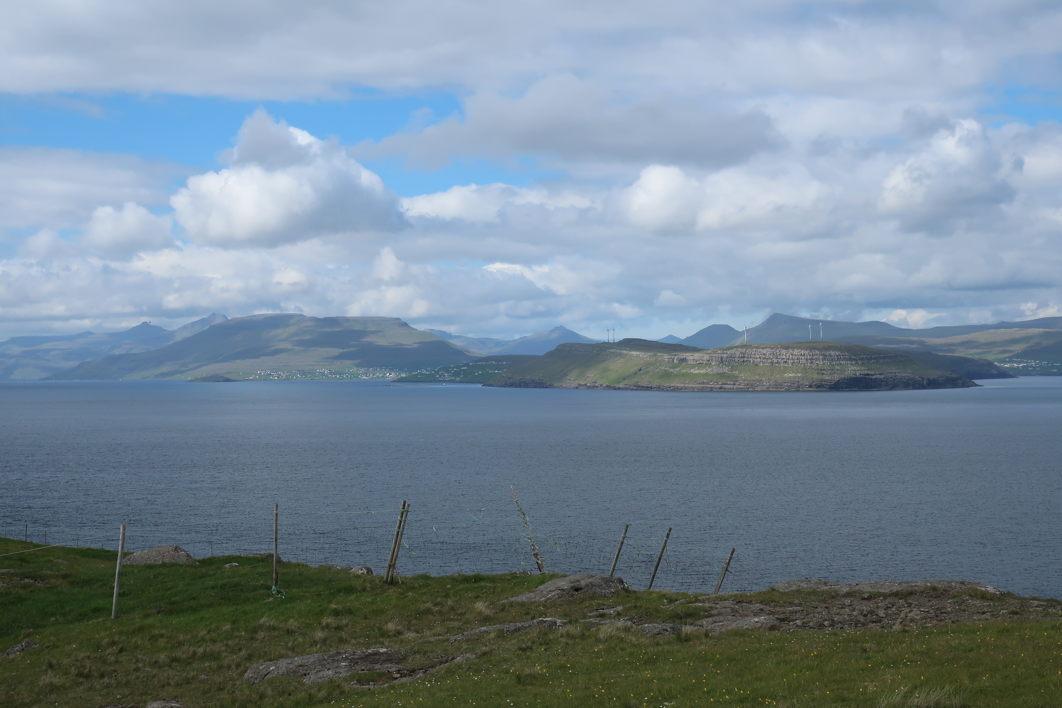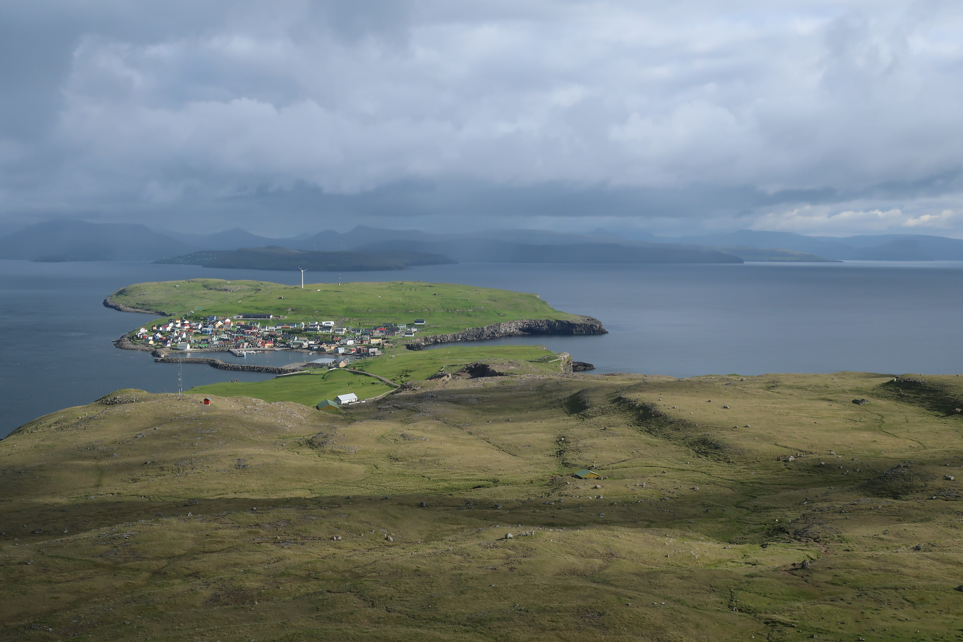 Mit der Fähre geht es heute auf die Insel Nolsoy. Die Insel liegt quer vor Torshavn und schützt damit die Stadt. Auf Nolsoy leben ca. 200 Menschen. Die Überfahrt von Torshavn dauert nur 20 Minuten. Als wir mit der Fähre ablegen hängen über Torshavn noch dunkle Wolken, in Richtung Nolsoy sieht es freundlicher aus. Und portal.fo hat uns einen sonnigen Tag versprochen.