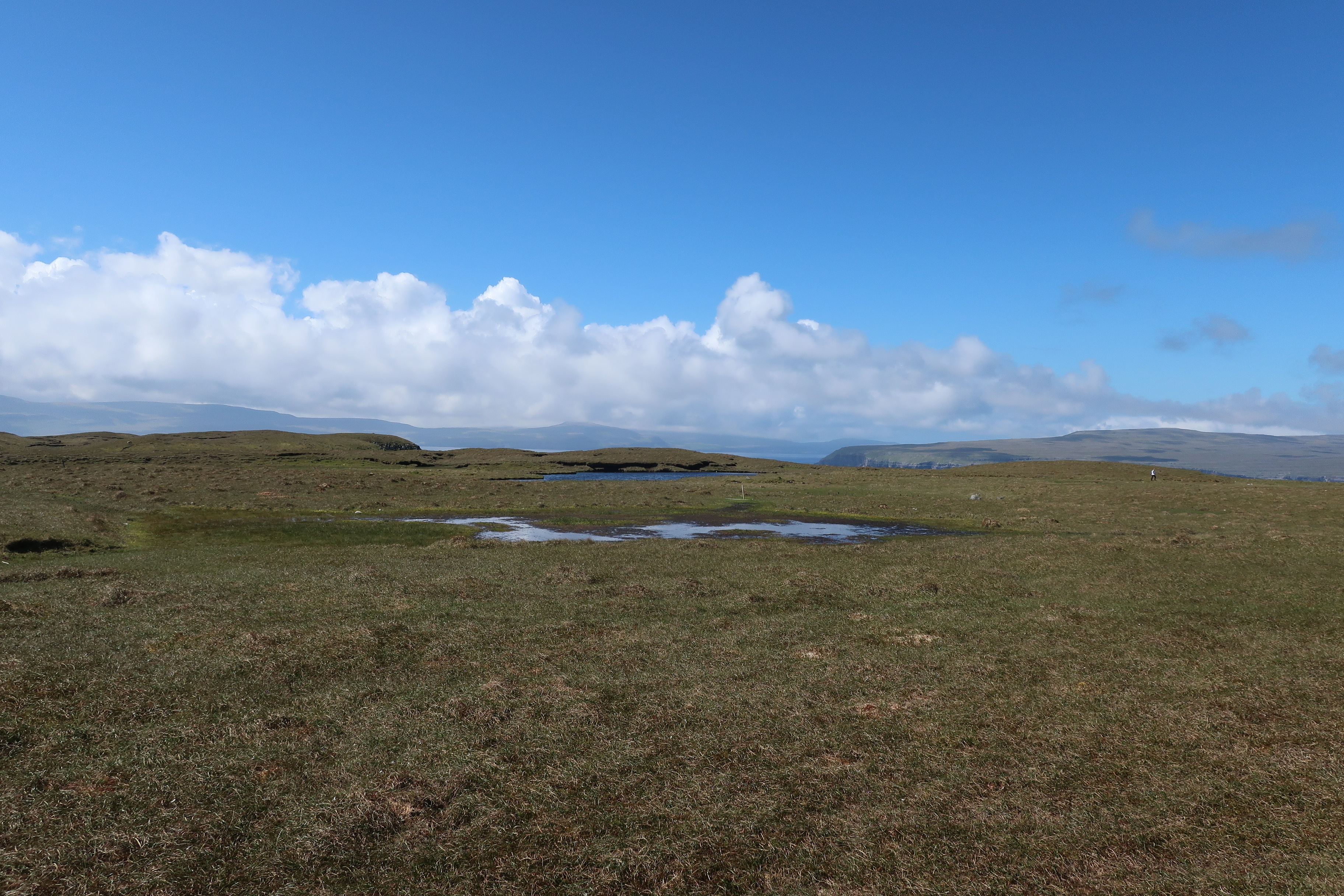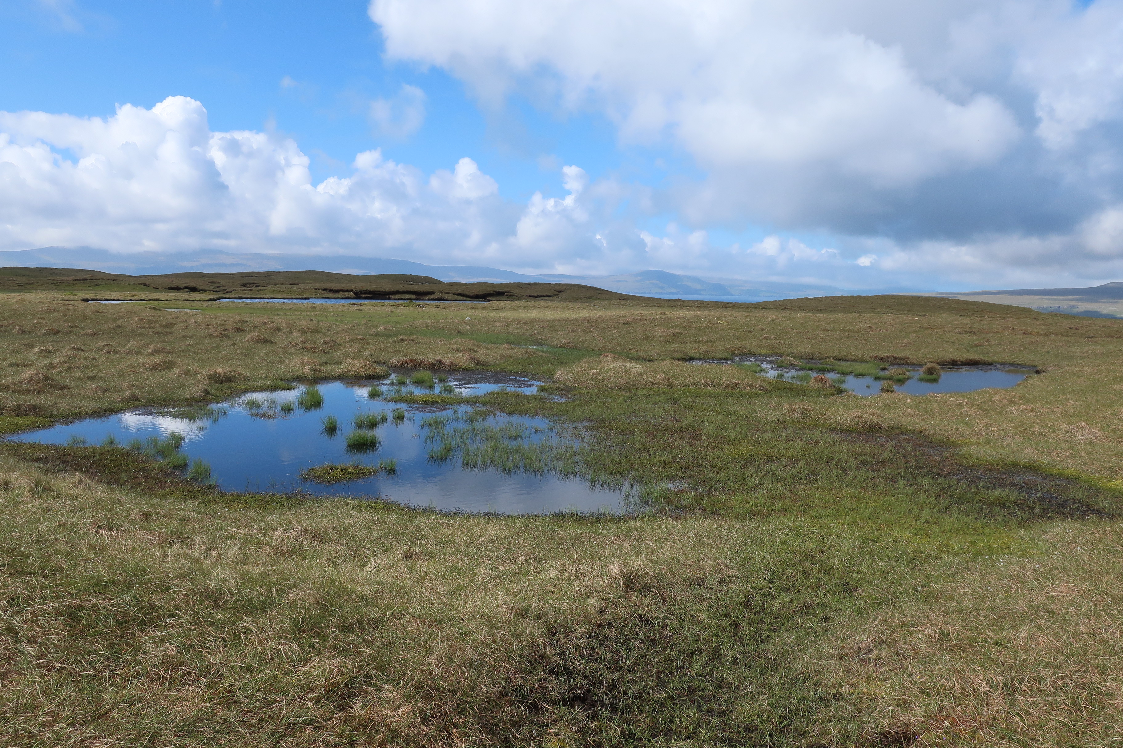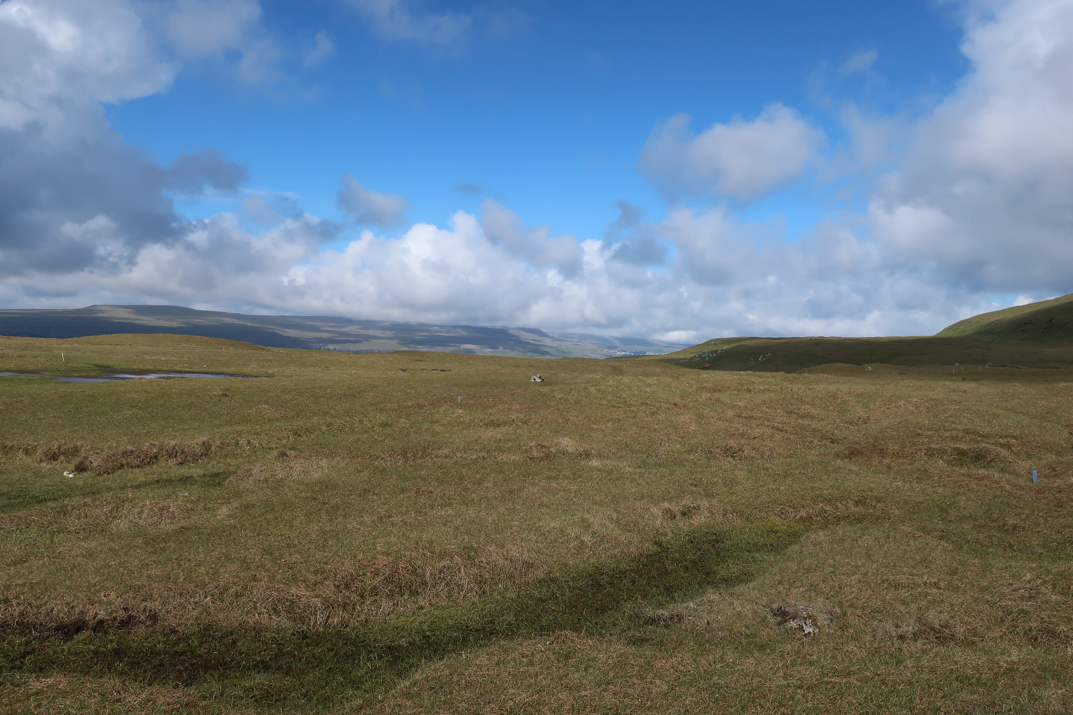Weiter im Verlauf geht es den Hang längs entlang. Es ist flach, aber insgesamt recht feucht und sumpfig. Immer wieder müssen wir mit großen Schritten Wasserläufe oder sumpfige Stellen überqueren. Und wenn meine Schrittlänge zu klein ist, geht es mit Anlauf und Schwung darüber.