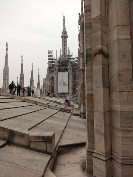 Heute ist es etwas wolkenverhangen und etwas nieselig. Wir haben uns entschieden, den Tag in Mailand zu verbringen. Wir haben einen guten Park & Ride Parkplatz empfohlen bekommen und waren so recht schnell und unkompliziert in der Innenstadt. Zuerst stehen wir in der Schlange vor dem Dom und versuchen den Tauben rechtzeitig auszuweichen, die hier im Tiefflug über den Platz flattern.