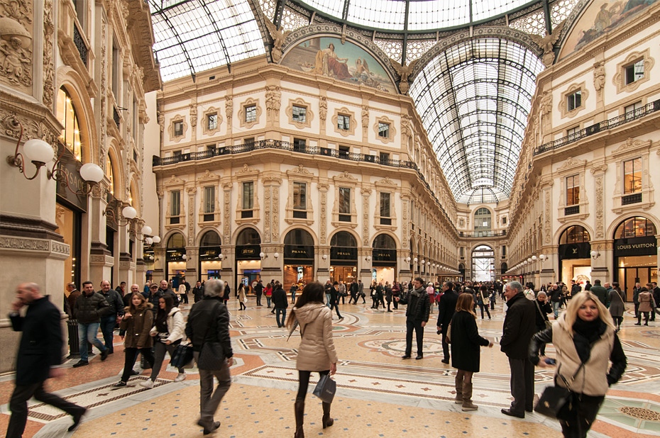 Ein paar Regentropfen lassen uns schnell in die Galleria Vittorio Emanuele abbiegen. Die überdachte Einkaufspassage beherbergt alles was Rang und Namen hat.