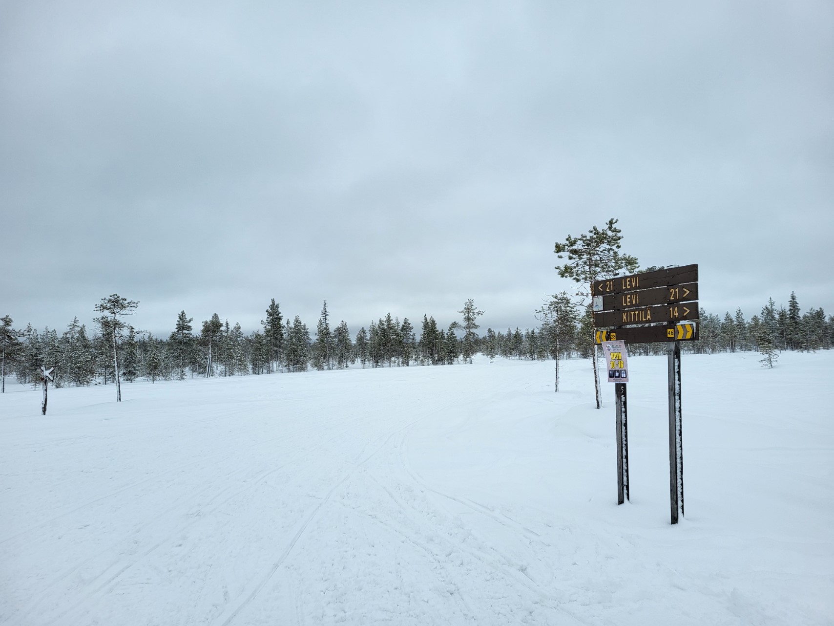 Nach zwei Stunden Fahrt sind wir platt, aber es hat voll Spaß gemacht. Nach einer heißen Schokolade und einem süßen Stückchen an der Talstation der Gondeln in’s Skigebiet von Levi geht’s auch schon weiter mit dem Auto Richtung Süden zurück nach Rovaniemi.