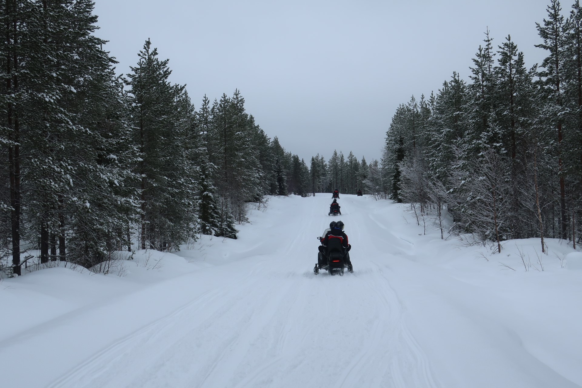 Die Nacht über hat es kräftig geschneit. Entsprechend war der Himmel bedeckt und wir konnten keine Polarlichter sehen. Sehr schade. Dafür nutzen wir heute nochmals den Tag und leihen uns ein Snowmobile. Auch rund um Levi gibt es wieder viele präparierte Strecken. Faszinierend dieses ganz eigene Verkehrsnetz mit Infrastruktur und allem für Snowmobile. Bedenkt man die Dauer des Winters, ist es wiederum total verständlich und macht auch super Spaß. Ohne Führerschein geht’s aber nicht und es gibt Verkehrsregeln und Geschwindigkeitsbeschränkungen. Und wohl auch Polizei, die das kontrolliert. Zumindest wurde uns das beim Annehmen des Snowmobiles versichert.