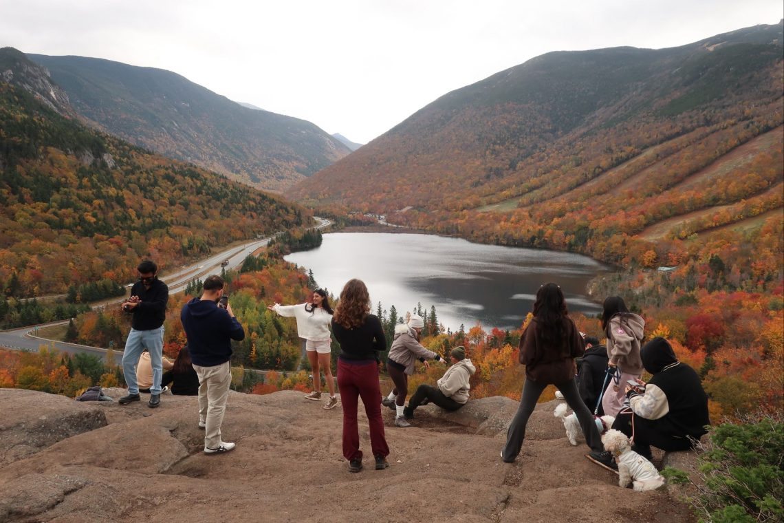 Artists View am Echo Lake ist ein beliebter Aussichtspunkt. Ein kurzer, felsiger Weg führt nach oben, an sich kein Problem, doch aufgrund der vielen Menschen, wird der Weg zum Erlebnis. Wir sehen so ziemlich alles an Schuhen – Crogs, Sandalen und kniehohe feine Lederstiefel, und vieles mehr. Der fein gepflegte weiße kleine Hund, der Dackel und der Schäferhund – jeder muss mit den steilen Stufen klar kommen. Auch Kinder und Babys auf dem Arm (ohne Trage oder Kraxe) sind zu sehen. Oben angekommen herrscht ein Trubel, überall Kinder, die auf den Felsen Turnen und Fangen spielen (ohne Brüstung oder Zaun), ein Rufen und Schreien, Menschen die fürs perfekte Bild am der Abbruchkante sitzen oder stehen und posieren… Da vergisst man fast, das wir eigentlich wegen der Aussicht her gekommen sind.