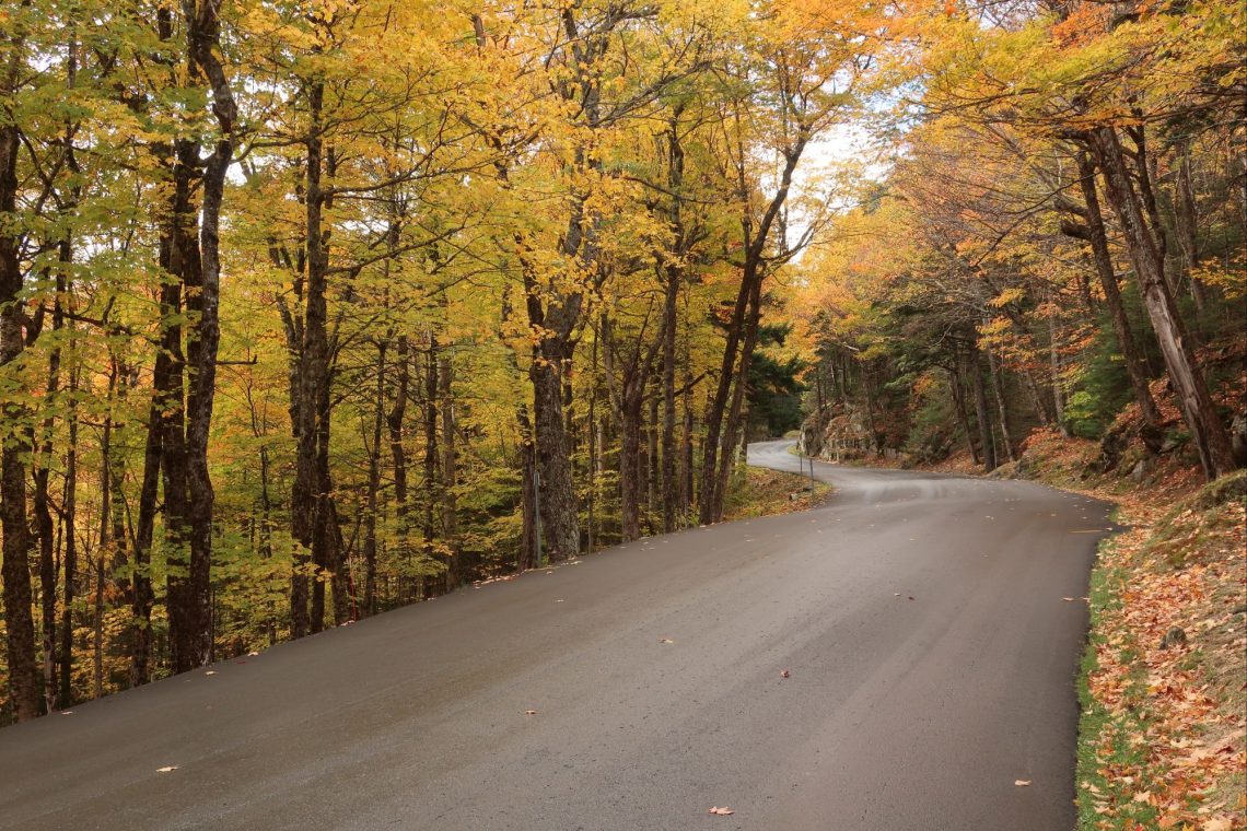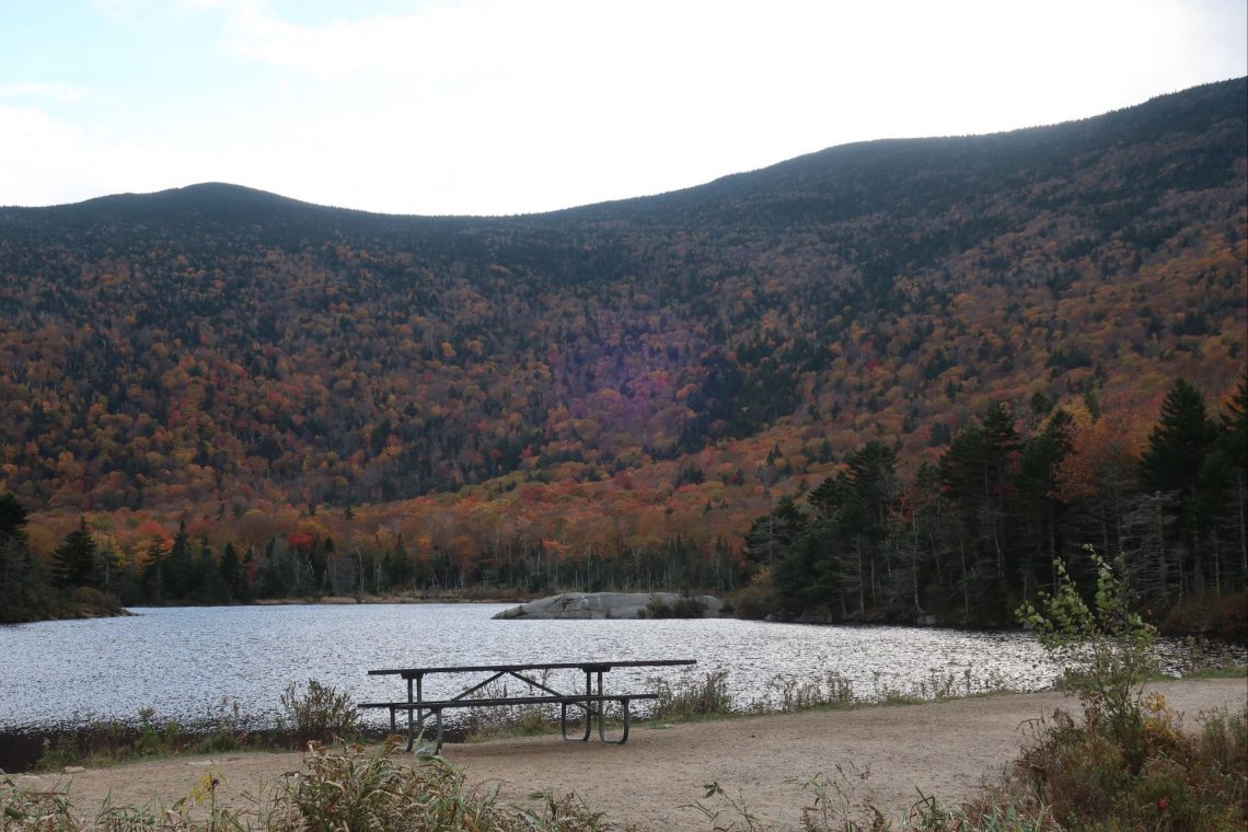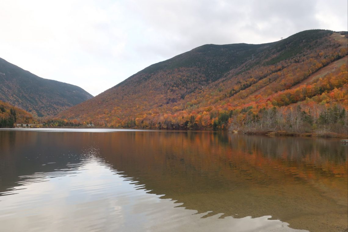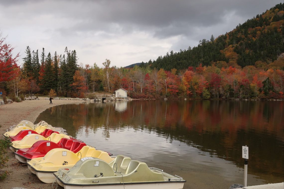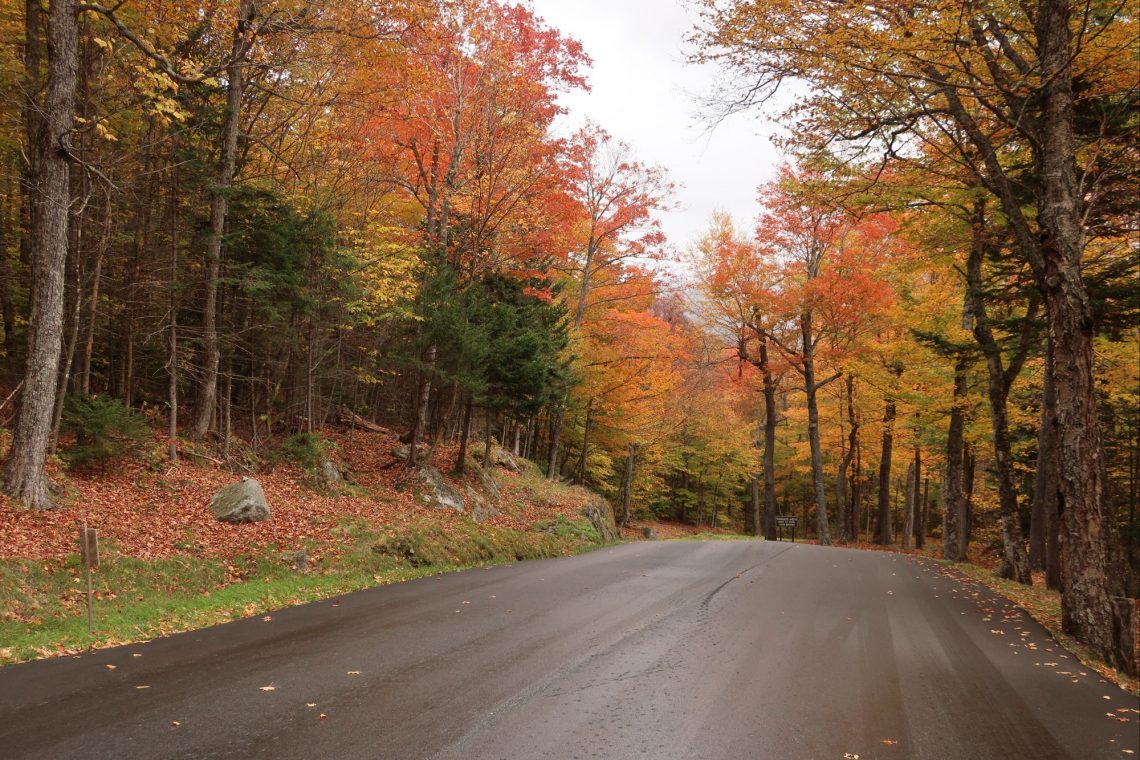 Abends fahren wir noch eine Runde weiter westlich durch die Kinsman Notch. Am Beaver Pond ist es ruhig, das Wasser kräuselt sich vom leichten Wind. Auch die Straße ist wenig befahren, fast schon einsam im Vergleich zu unserem Erlebnis vor einer Stunde. Landschaftlich ist es in der Kinsman Notch ebenso schön, wie auf den anderen Scenic Byways. Die Bäume strahlen in allen herbstlichen Farben entlang der Straße. Ab Swiftwater gibt es einen neuen, dunklen Straßenbelag (Straße 112), die Straße schlängelt sich schön fließend parallel zum Fluss. Und es ist kaum was los.