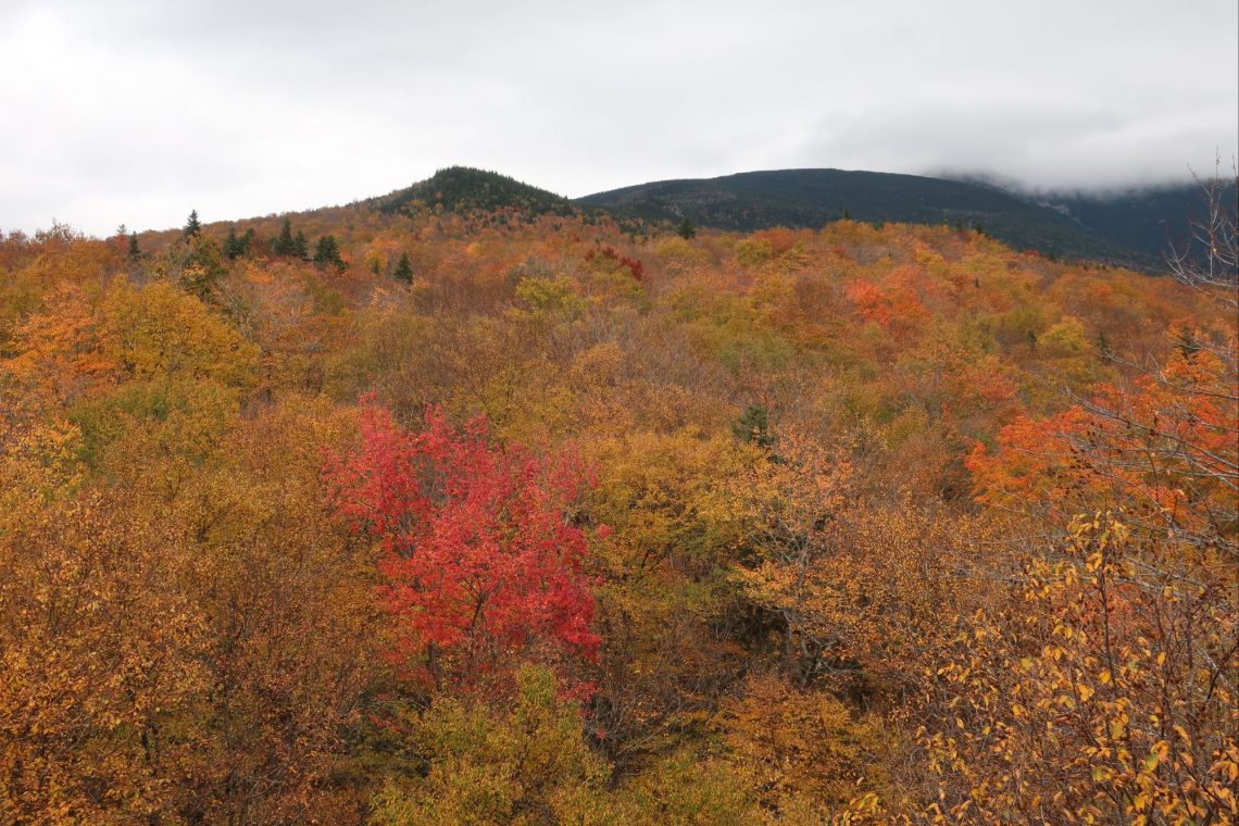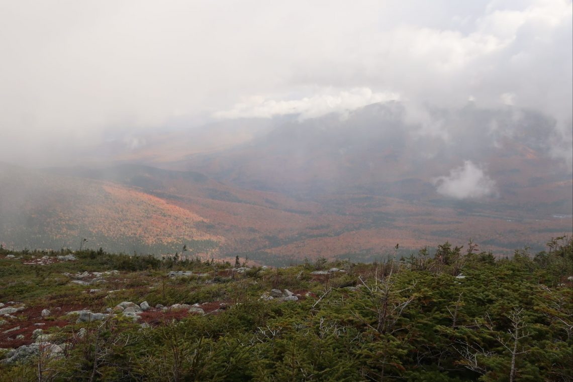 Für uns beginnt der Tag hier im Norden fern des Sturmes mit dem 2. Versuch den Mount Washington Gipfel anzufahren. Eine Stunde Fahrt bis zum Fuß des Bergs – und dann die Info: die Straßen oben sind gefroren, man darf nur bis zur Hälfte hoch fahren (für 50 Dollar). Doch dann haben wir unseren ersten Schnee dieses Jahr. Kurz über der Baumgrenze ist der höchste Punkt, den wir heute erreichen können. Kaum haben wir geparkt, rieselt Schnee vom Himmel. Kleine, feine weiße Kügelchen, die allerdings beim aufkommen auf dem Boden sofort schmelzen.