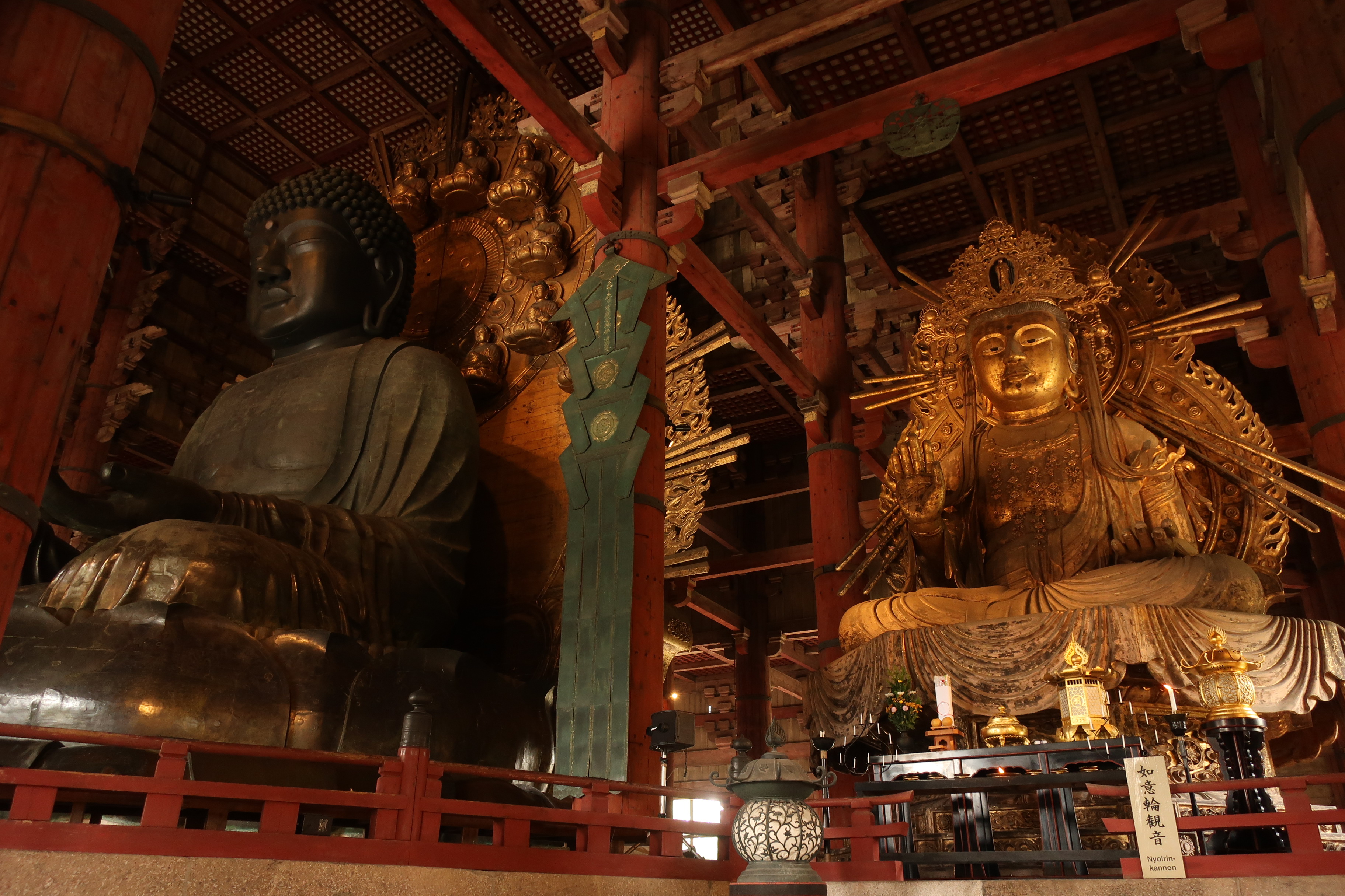 Im Haupttempel sitzt ein riesig großer Buddha aus Bronze. Das Gebäude ist komplett aus Holz gebaut (vermutlich ohne Nägel). Und ist wohl das größte Holzhaus der Welt. Die Dimensionen sind unglaublich.