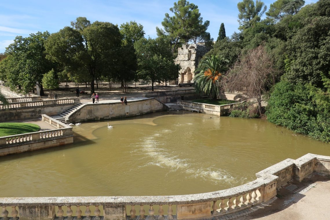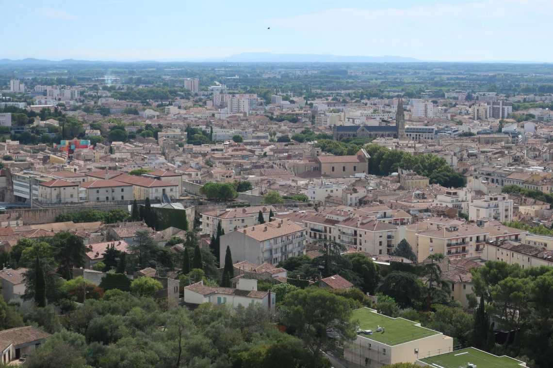 Nach einem ordentlichen Gewitter nachts, ist es heute wieder sonnig und warm. Wir gehen nochmal durch die Gassen von Nimes zum Jardin des la Fontaine. Vom Tour Magne hat man einen tollen Blick über die Stadt.