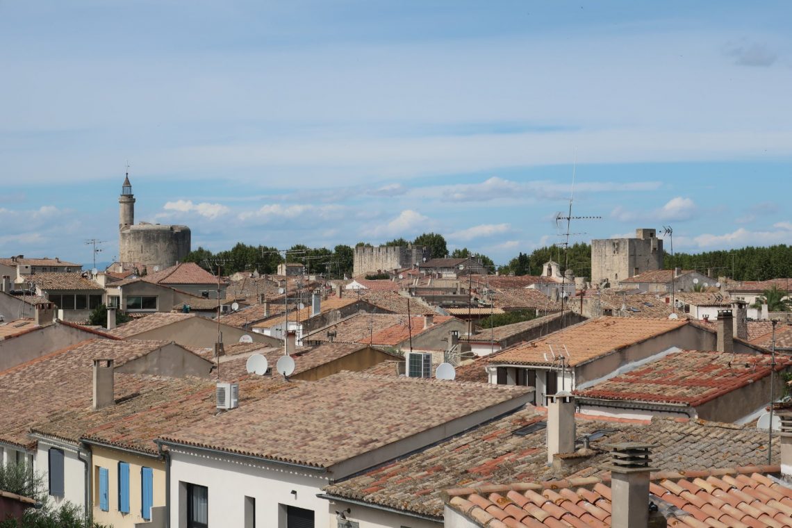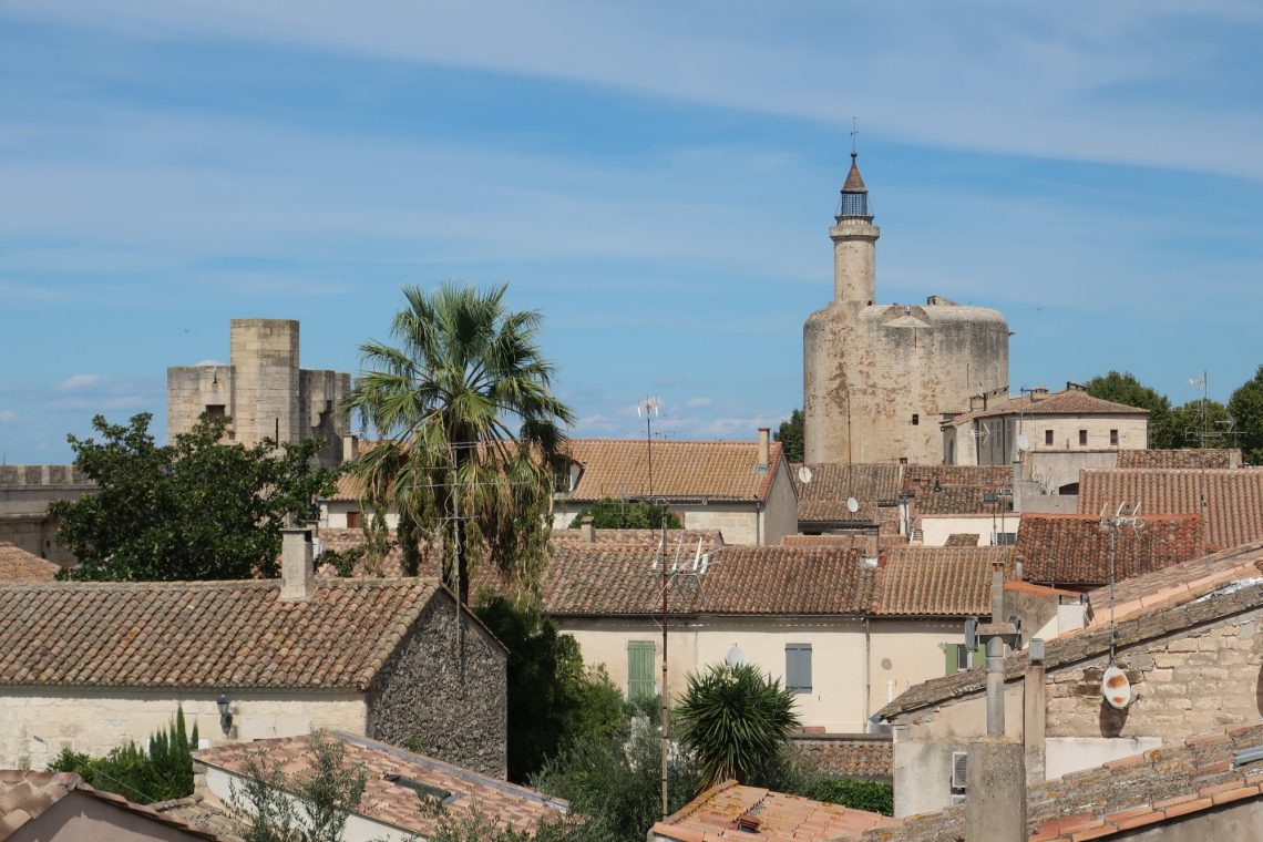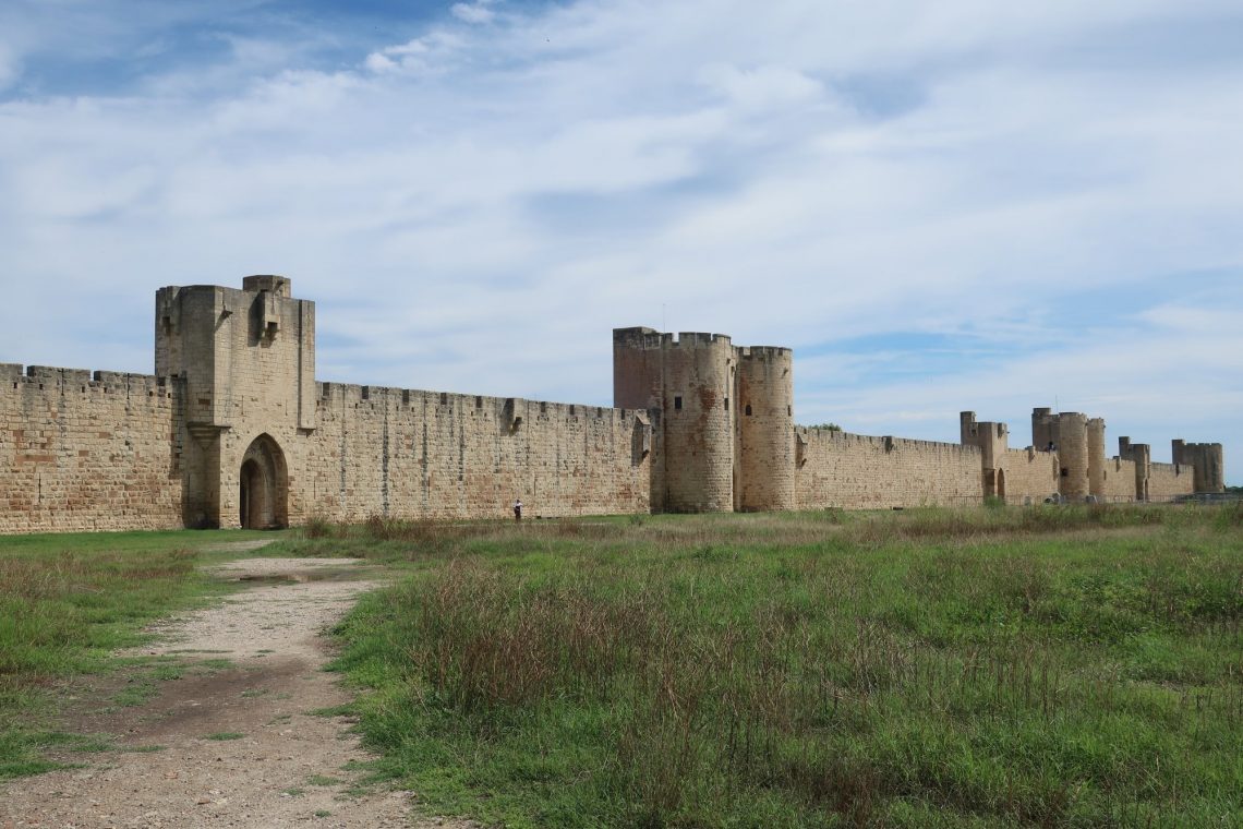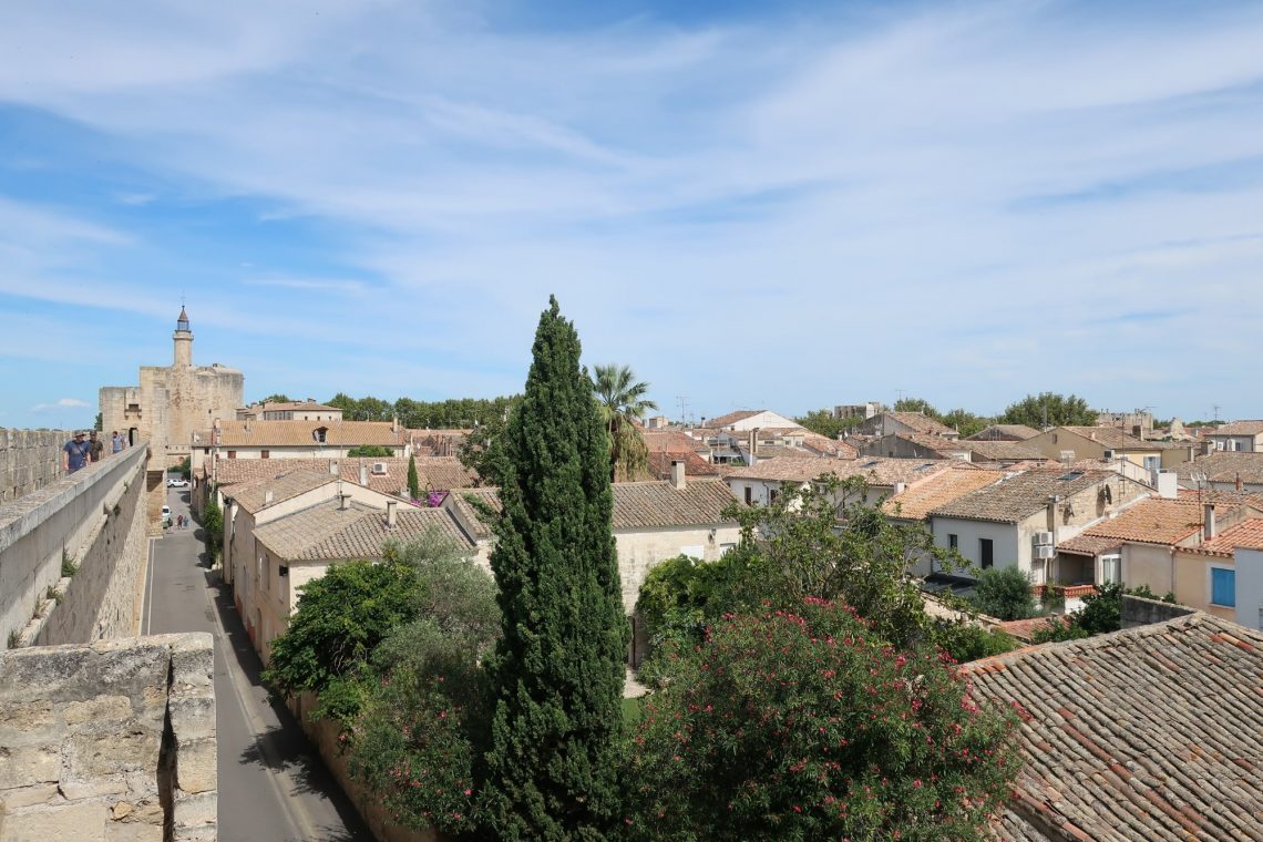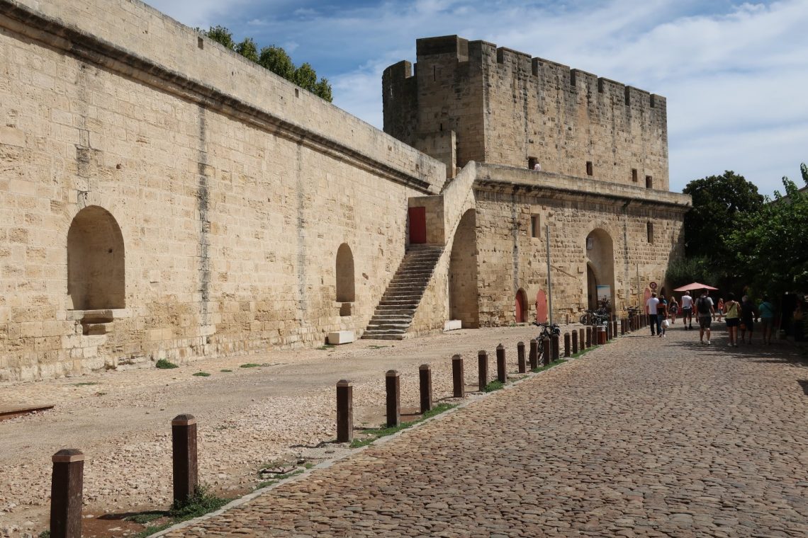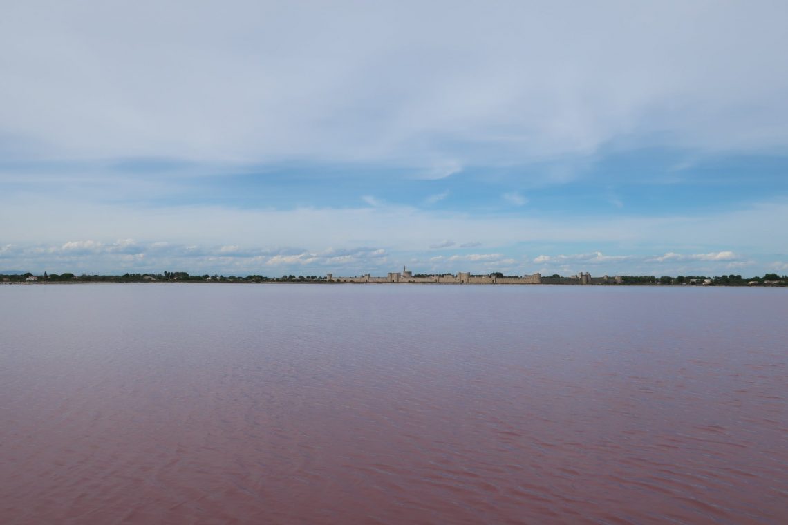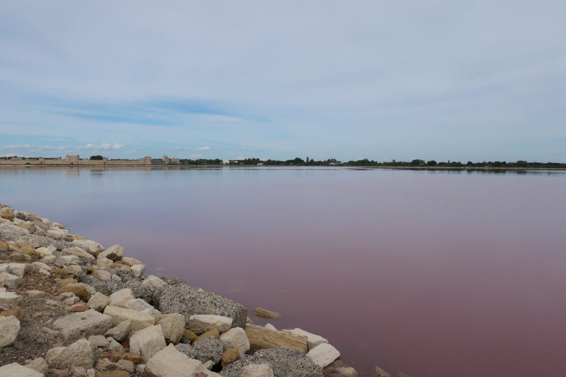 In der Camargue fahren wir zuerst nach Aigues-Mortes. Das Städtchen lag früher am Meer (heute am Kanal) und war perfekter Ausgangspunkt für die Kreuzzüge. Det Stadtkern von Aigues-Mortes ist gut erhalten. Die Stadtmauer ringsherum begehbar. Entsprechend touristisch ist die Altstadt. Dennoch lohnt sich der Rundgang über die Stadtmauer. Man sieht den Stadtkern von oben mit den verwinkelten Gassen, Häusern und Gärten. Vielmehr allerdings lohnt der Ausblick nach Süden zu den Salinen mit den weißen Salzbergen.